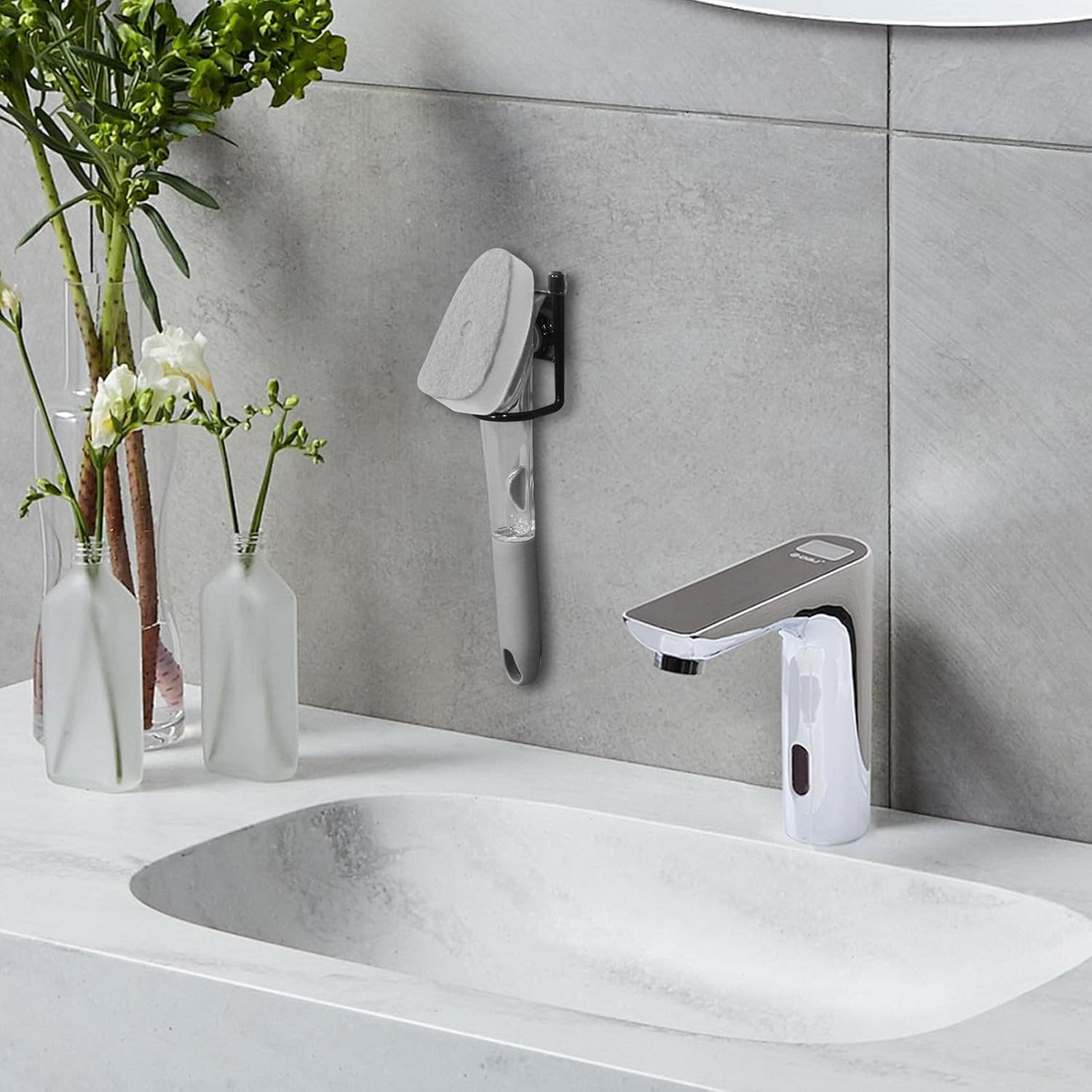 Sink Brush Holder, Magnetic Kitchen Sink Caddy Holder, Soap Dispensing Palm Brush Holder, Sink Drain Frame- Black