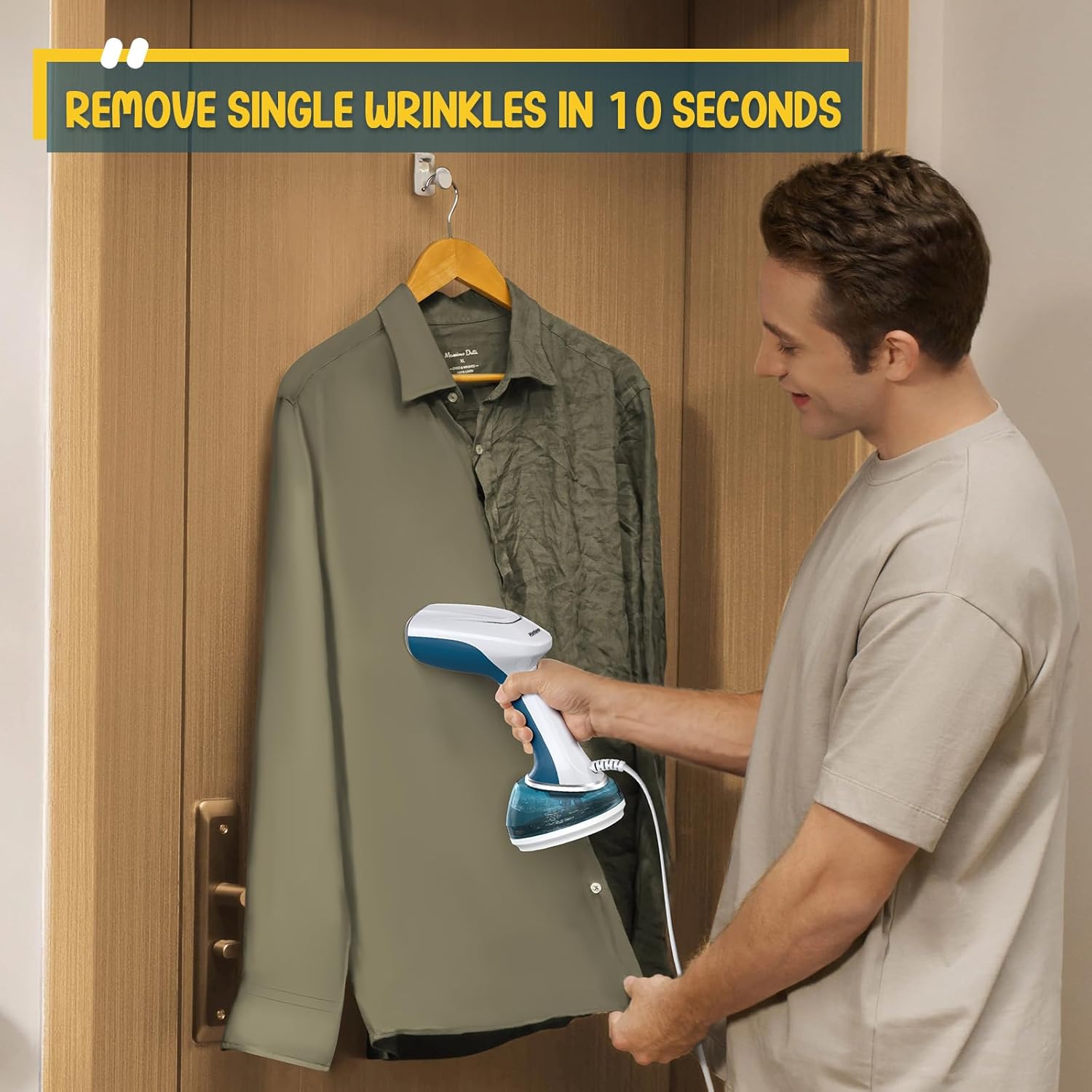 - 【Lightweight and portable size】Lightweight and portable size and ergonomic hand held design ensure comfortable control, this steamer is easy to use, store and perfect for home, office and travel. You don’t need to look for rusty and inefficient bulky irons at your travel destinations anymore. Get this clothes steamer to make life and work easier.