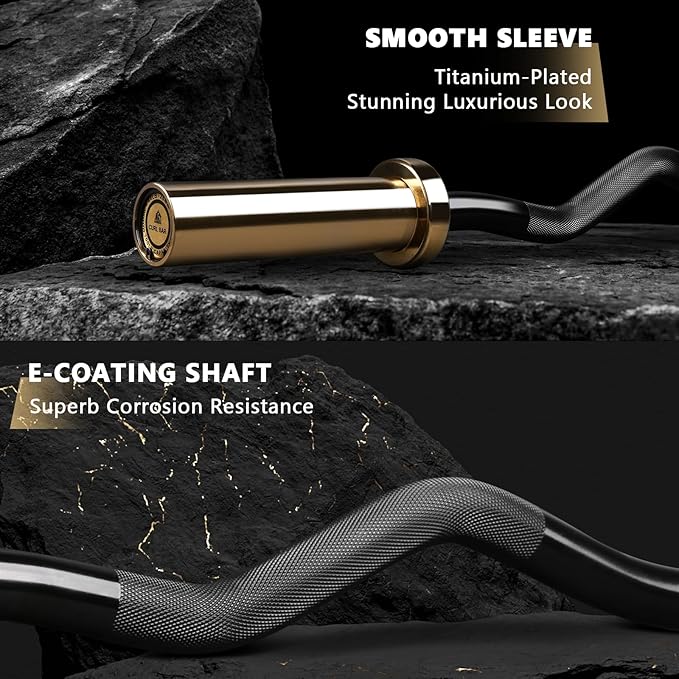 - Uncompromising Durability with Smooth Performance: Made of premium grade alloy steel, LIONSCOOL Curl bar is built to withstand the test of time. The titanium-plated sleeves provide outstanding durability and rust resistance. And the sleeves are smooth enough to offer a seamless and quiet plate-loading experience. Premium ball bearing and self-lubricating brass bushing in the sleeves enable outstanding spin and stability.