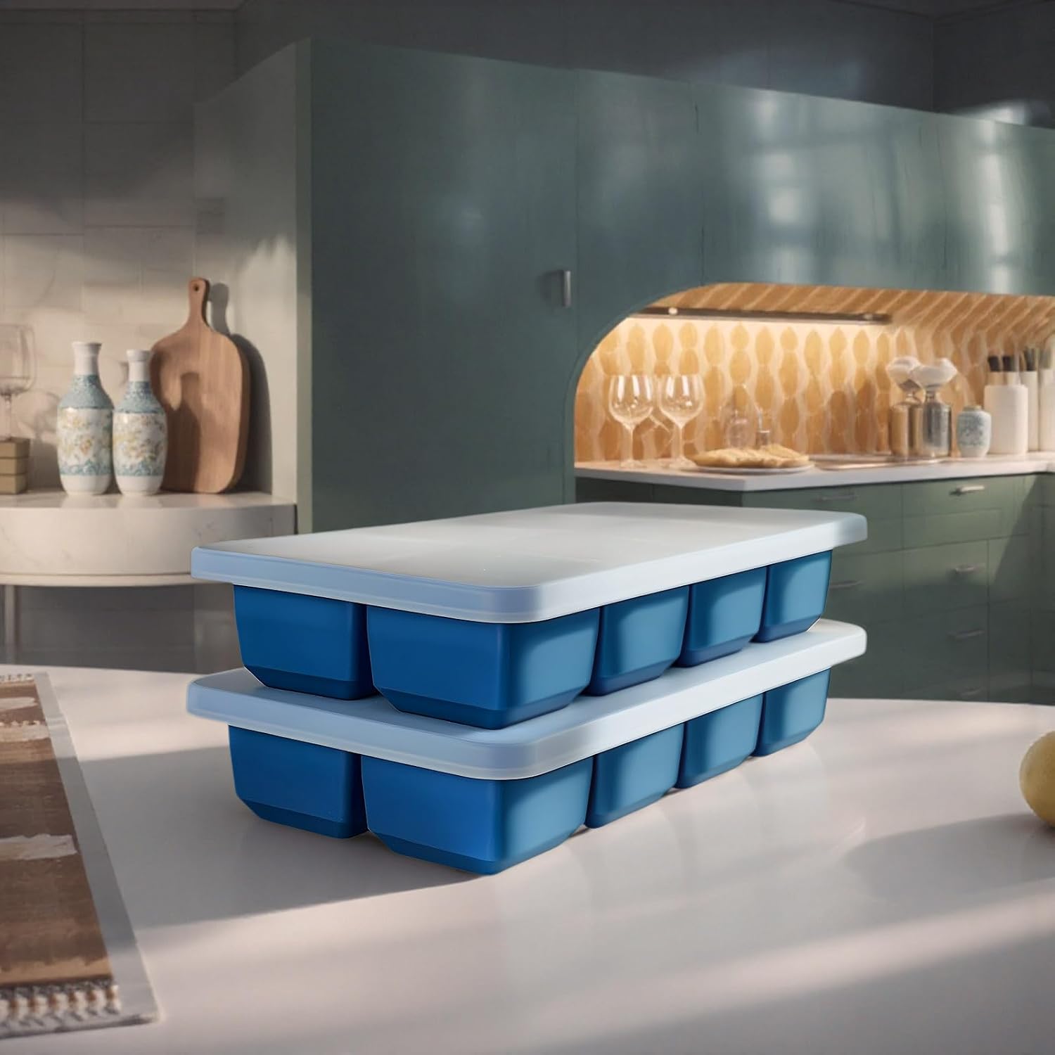 - SPACE-SAVING ICE TRAY WITH ODOR-PROOF LID: The tightly fitting silicone lid seals in freshness and prevents odors from seeping into the ice. This large ice cube mold is stackable, maximizing your freezer space while ensuring fresh, clean-tasting ice cubes every time.