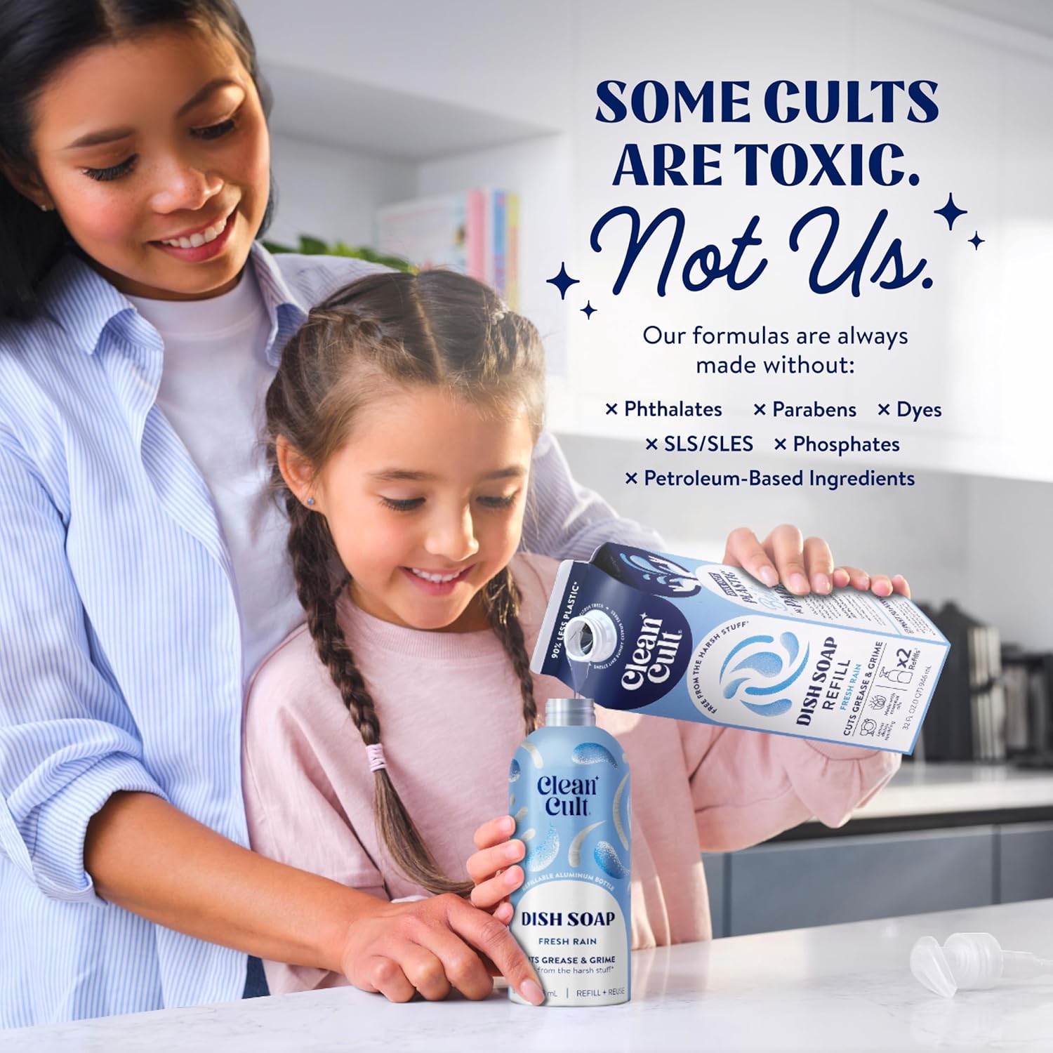 - A CLEANER KIND OF CULT: We only use the good stuff to keep your dishes clean and your skin healthy. Our natural dish soap formulas are always made without phthalates, phosphates, petroleum based ingredients, dyes, SLS, & SLES.