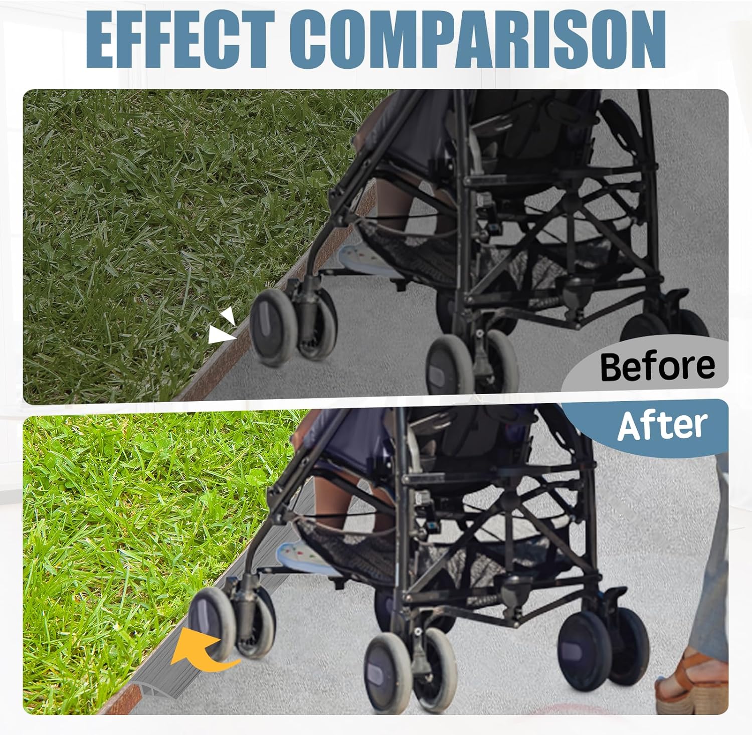 - 【Product Size】Door transition strip long 39", wide 2.75", suitable for thresholds within 0.6" in height. In order to facilitate transportation, the product is in a curled state when it is received, and it can be bent in the opposite direction transition strip before use to return it to a straight state for easy installation