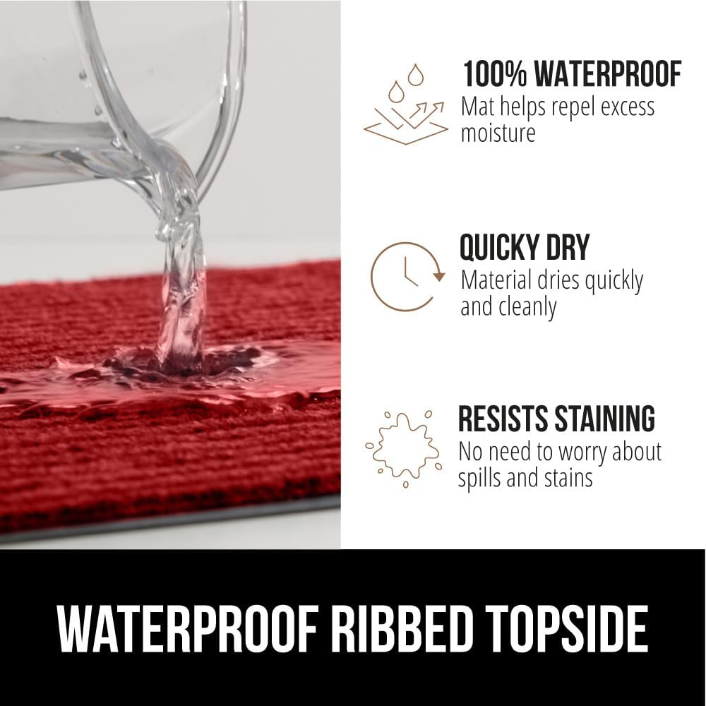 - WATERPROOF RIBBED TOPSIDE: ultra absorbent and 100% waterproof, the mat's surface helps to capture excess water and moisture; plus, premium fabric dries quickly and resists staining and fading for long lasting use