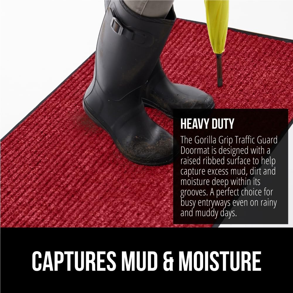 - BUILT TOUGH FOR HIGH TRAFFIC: the Gorilla Grip Traffic Guard doormat is ultra strong and built tough to withstand high foot traffic; constructed with a high quality textured PVC backing and raised fabric topside to help scrape off dirt and debris; thick and plush topside is gentle on bare feet, but durable for boots