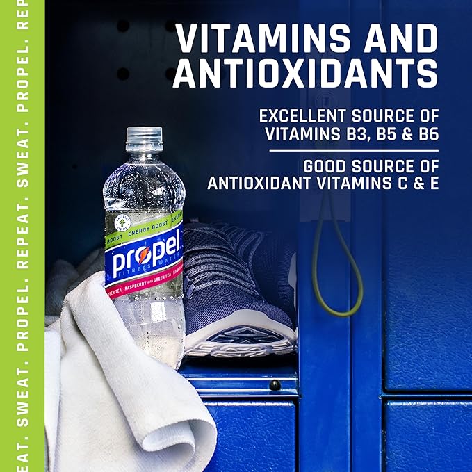 - Propel electrolyte water beverage contains B Vitamins (B3, B5, and B6), and antioxidants Vitamin C and E