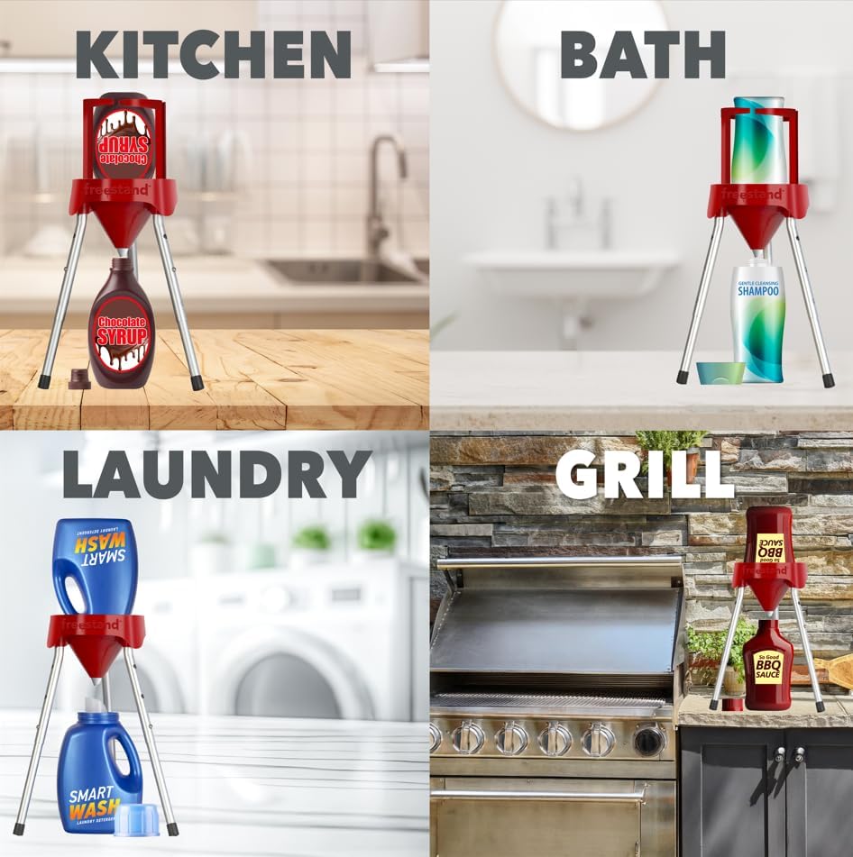 - MAXIMIZE PRODUCT USE: Designed to help you get every last drop from your health, beauty and personal care products. Lotions, shampoos, conditioners, oils, body washes, perfumes, and more—Freestand easily reduces waste and ensures you’re getting the most out of every bottle, saving you money, frustration, and extending the life of your favorite products.