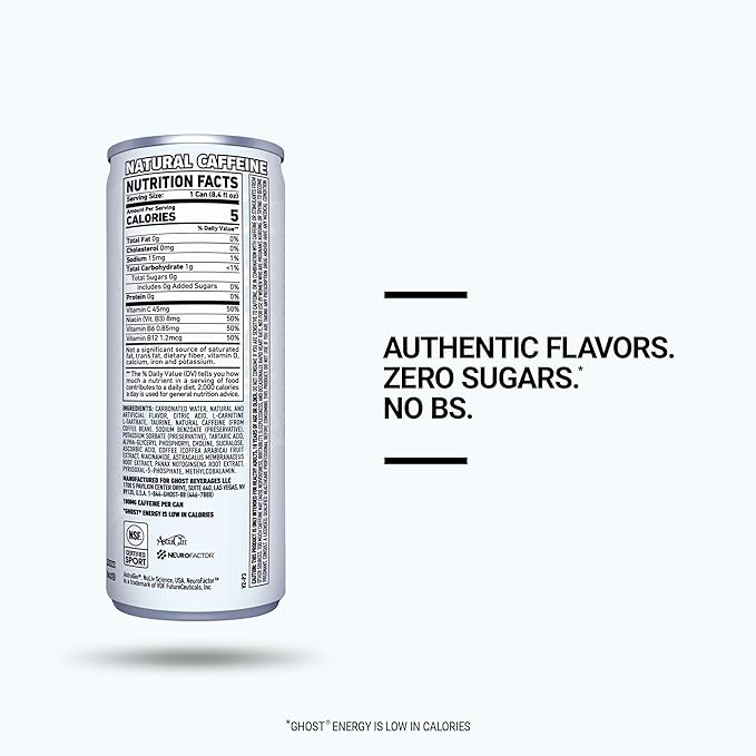 - Perfect Energy and Focus Combo: GHOST Energy is a full disclosure energy drink that delivers on efficacy and the info to ensure you know exactly what you're getting in every can. Combining 100mg of natural caffeine with nootropics to deliver the perfect combo of energy and focus.*