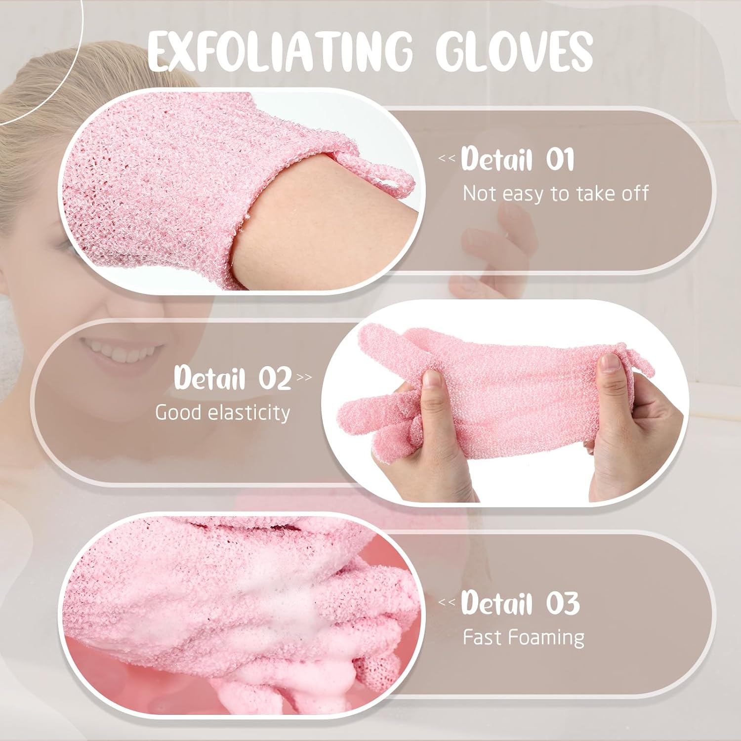 - Sufficient Quantity and Colors: you will receive 104 pairs (52 pairs) of pink exfoliating gloves, with their quantity and function, suitable for spa, massage, bath and shower, satisfying your daily use, and you can also share with other people