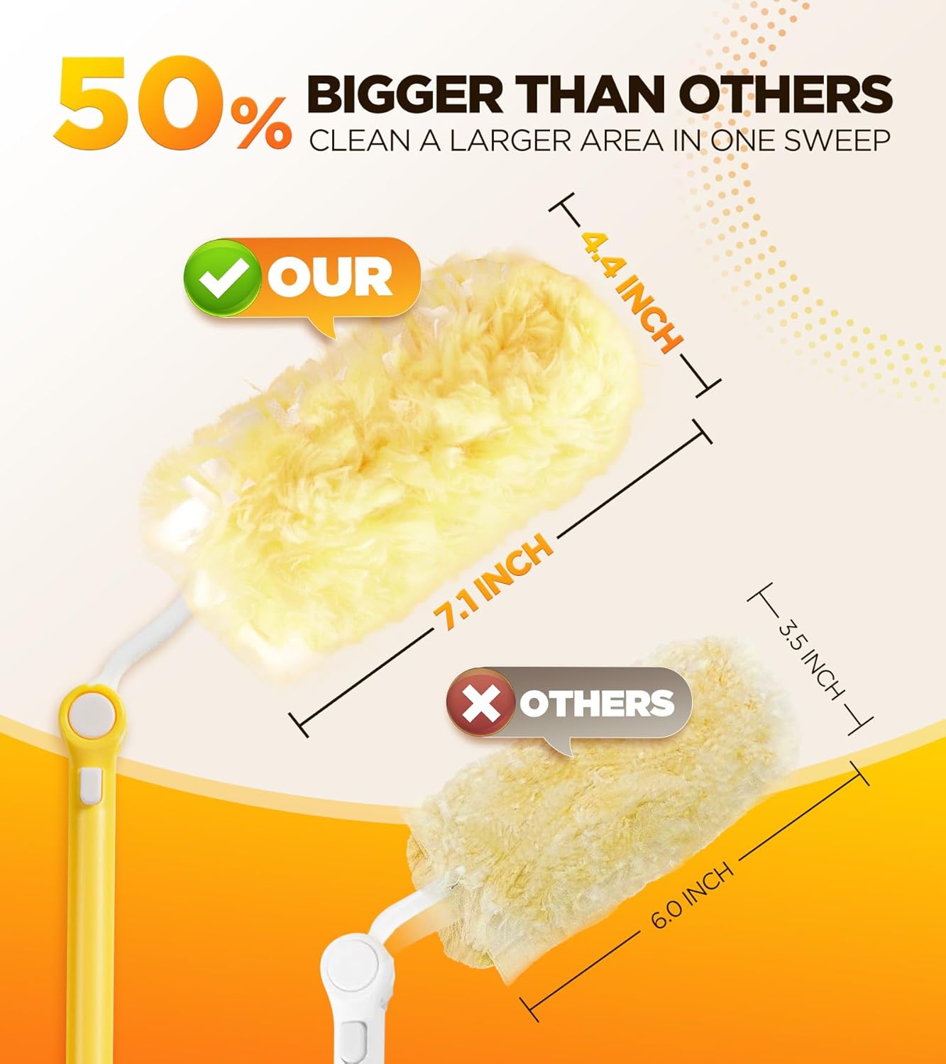 - 4X DUSTING POWER - Boasting 4X coated microfibers and larger size than the original, our dusters create more static to grab and hold more dust in a single sweep, eliminating the need for tedious, repeated cleaning. The 360° all-round coverage ensures every corner, edge, and crevice is thoroughly cleaned.