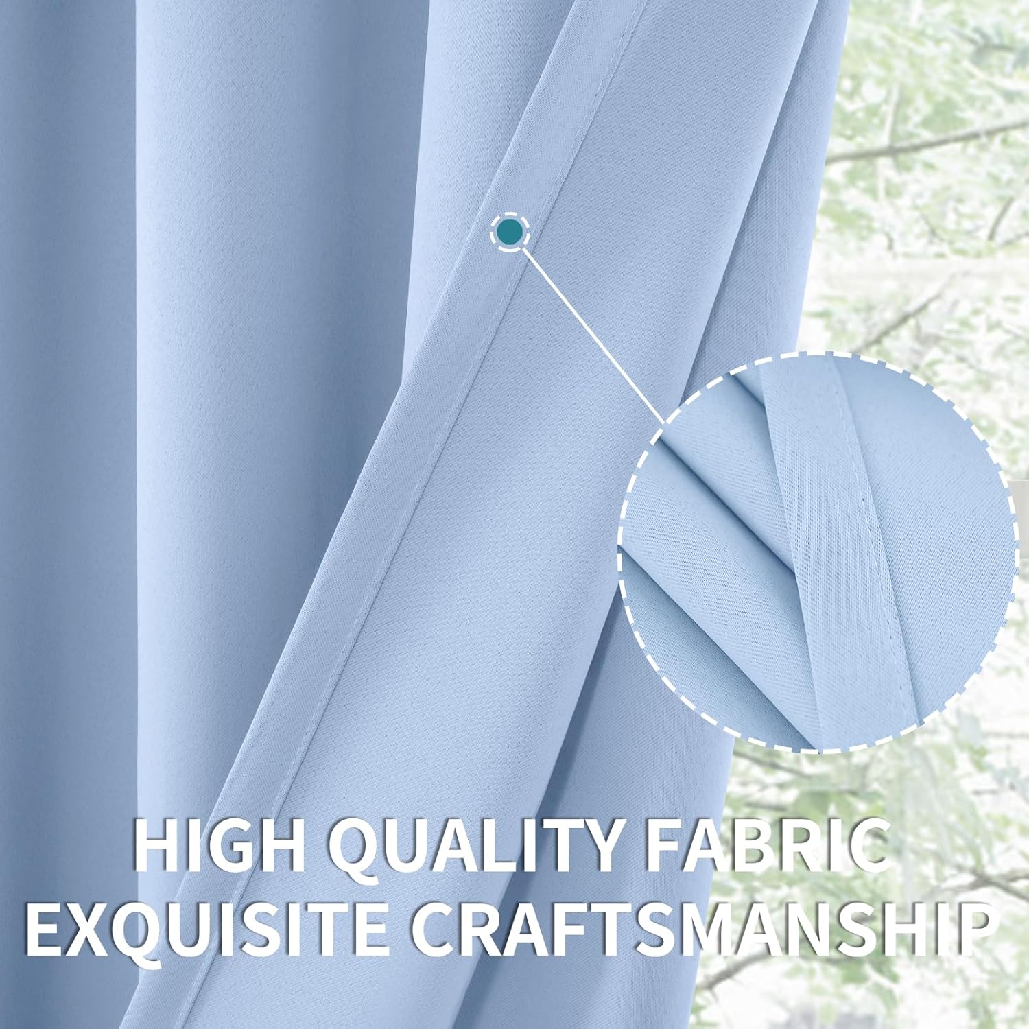 - Package Includes: Set of 2 baby blue blackout curtains; each panel measures 42 Inch wide by 40 Inch long.