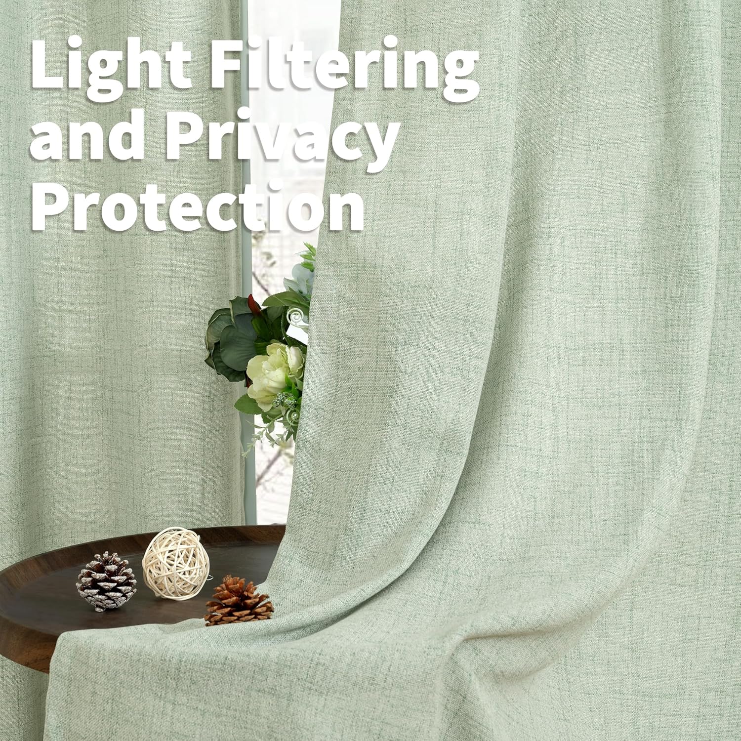 YoungsTex Sage Green Curtains 72 Inch Length for Living Room, Semi Sheer Linen Drapes Light Filtering with Back Tab Rod Pocket for Bedroom Farmhouse Spring Decor, 42 X 72 Inch, 2 Panels
