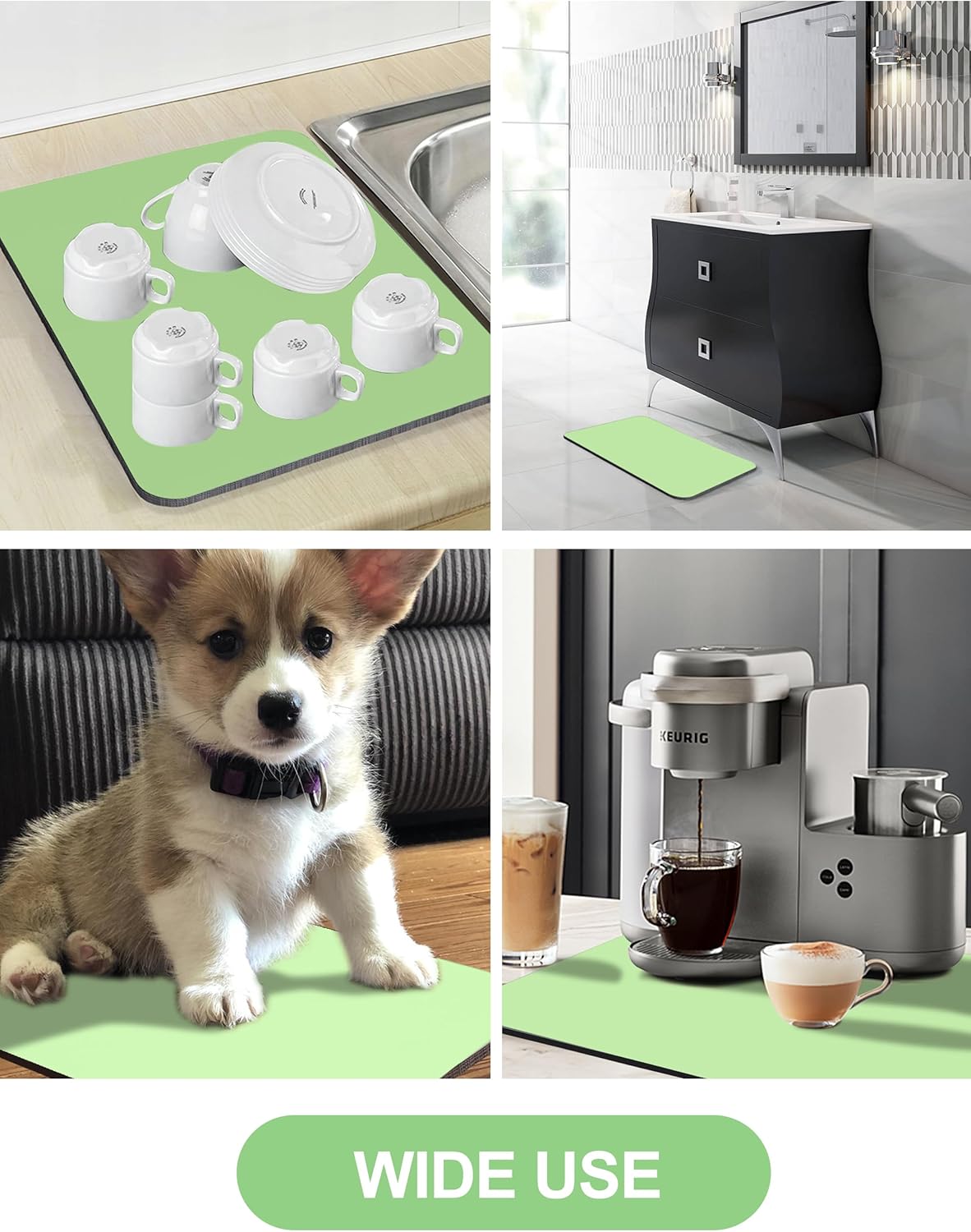Dish Drying Mat for Kitchen Counter, 16"x24" Dish Drying Pad with Non-slip Rubber Backed, Hide Stain Anti Absorbent for Kitchen Counter, Drying Mat for Coffee Machine Dish Rack (Green)