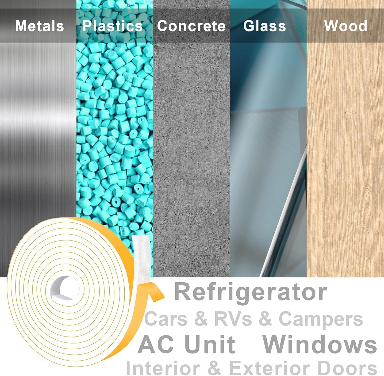 - 🟠WIDE APPLICATION-Trisiki's rubber weather tape is a tough, durable self-stick tape with minimal compression and can help prevent rattles, vibrations and squeaks. It's widely used as a weatherstrip, or as a gasket or to cushion and stabilize major appliances, such as doors, windows, furniture, electrical cabinets, speakers, toys, handicrafts, sports equipment, vents, air conditioners, plumbing, hvac. Plus, on cars, trucks and boats