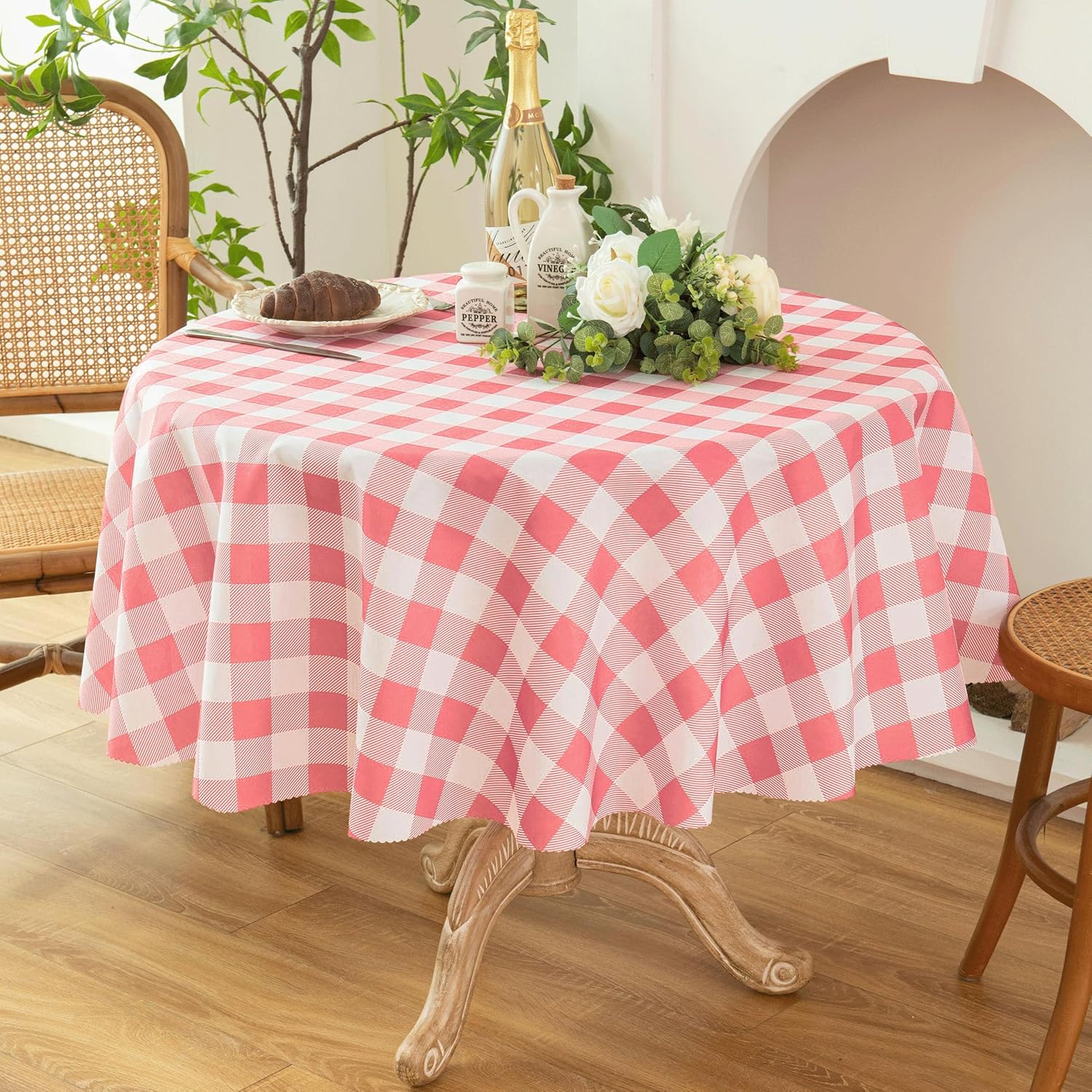 Waterproof Plaid Tablecloth Fabric - Round 70 Inch Classic Gingham Checker Table Cloth for Indoor/Outdoor Use - Buffalo Table Cover for Picnics, BBQs, and Parties