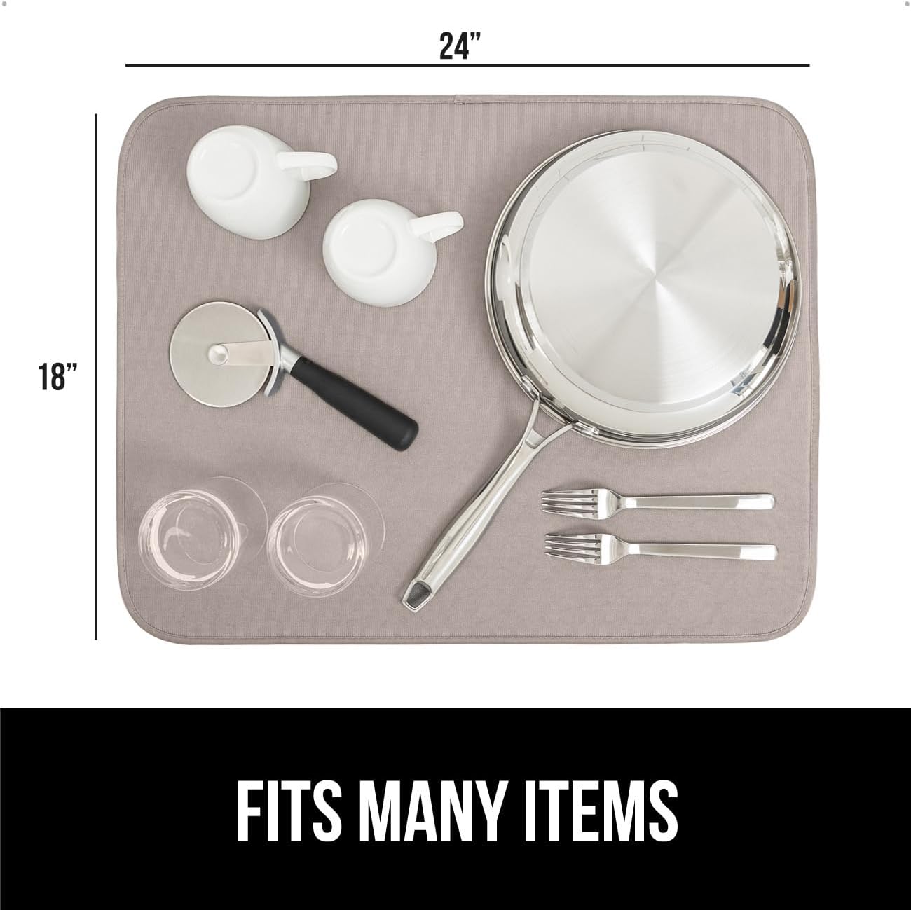 GORILLA GRIP Ultra Water Absorbent Microfiber Dish Drying Mat, 18x24, Quick Dry Thick Mesh, Slip Resistant Pad for Sink Dishes or Under Rack, Kitchen Counter Accessories, Machine Wash, 2 Pack Almond