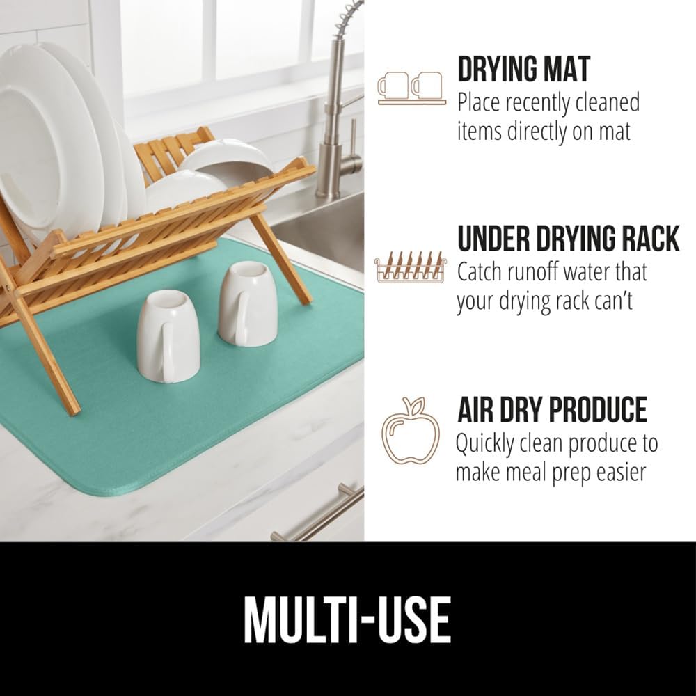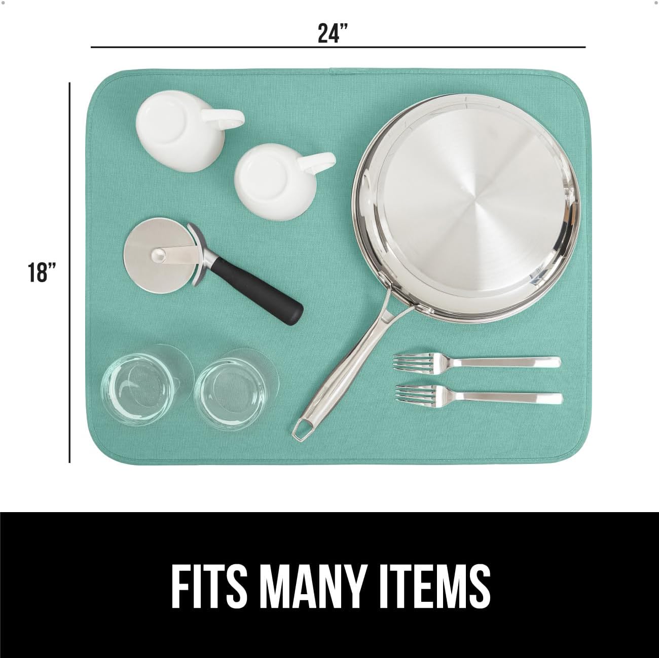 GORILLA GRIP Ultra Water Absorbent Microfiber Dish Drying Mat, 18x24, Quick Dry Thick Mesh, Slip Resistant Pad for Sink Dishes or Under Rack, Kitchen Counter Accessories, Machine Wash, 2 Pack Mint
