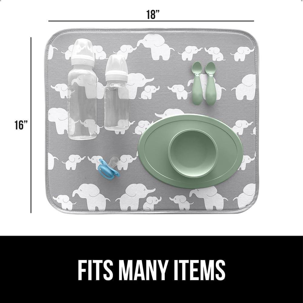 GORILLA GRIP Ultra Water Absorbent Microfiber Dish Drying Mat, Quick Dry Mesh, Slip Resistant Pad for Sink Dishes or Under Rack, Kitchen Counter Accessories, 16x18, Machine Wash, 2 Pack Elephants