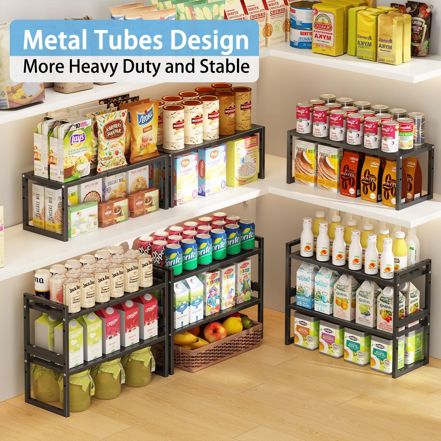 - [𝗦𝘁𝗮𝗰𝗸𝗮𝗯𝗹𝗲 𝗗𝗲𝘀𝗶𝗴𝗻 𝗙𝗼𝗿 𝗣𝗹𝗲𝗻𝘁𝘆 𝗦𝘁𝗼𝗿𝗮𝗴𝗲]:---Each kitchen cabinet organizer can be stacked together or used individually,providing plenty of storage space for your spices,mugs,dishware,kitchen accessories, canned goods and more.