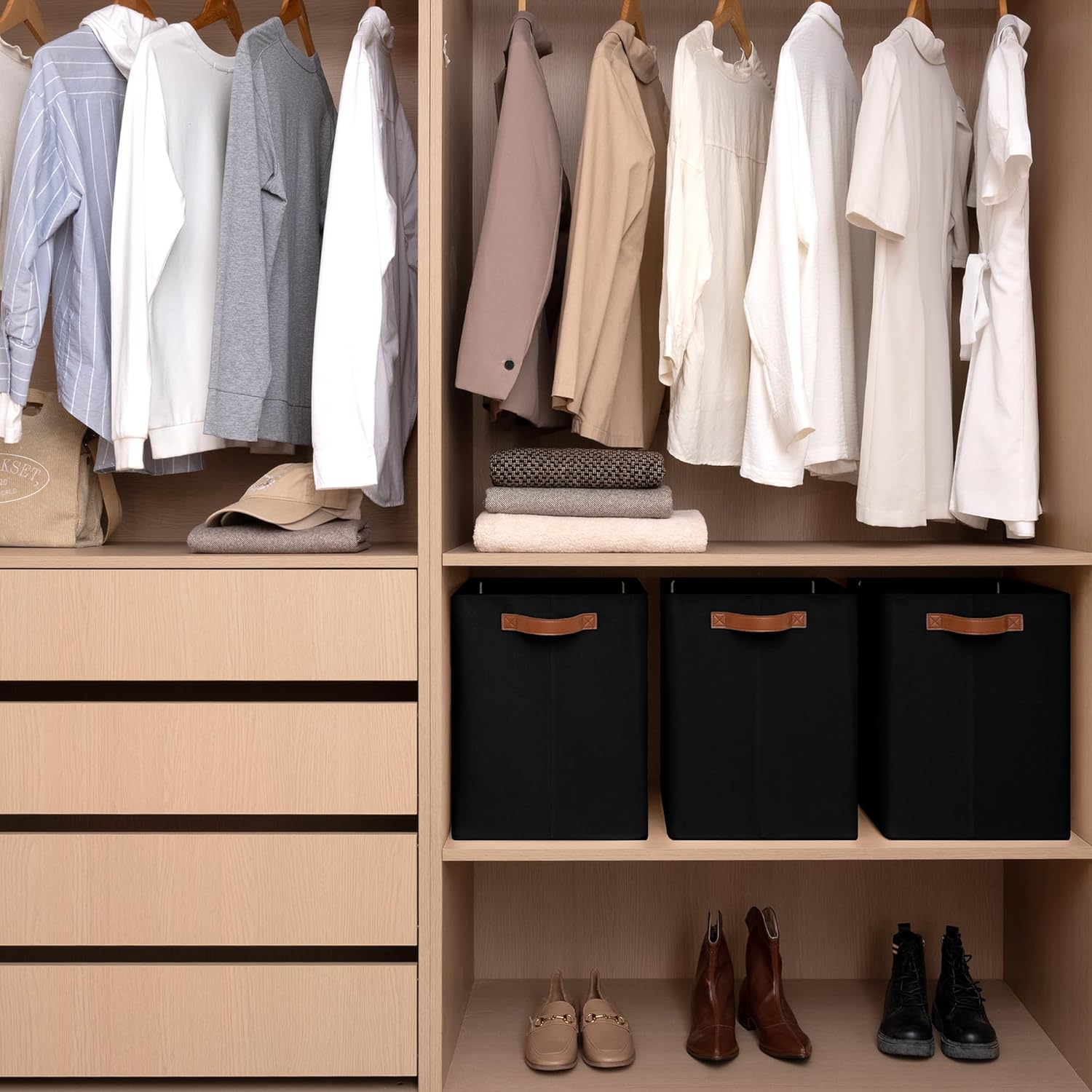 - PU Leather Handles: Designed with 2 durable sewn-in PU leather handles, this bin allows for easy lifting or pulling from shelves, closets, or cabinets—making everyday access effortless and stylish.
