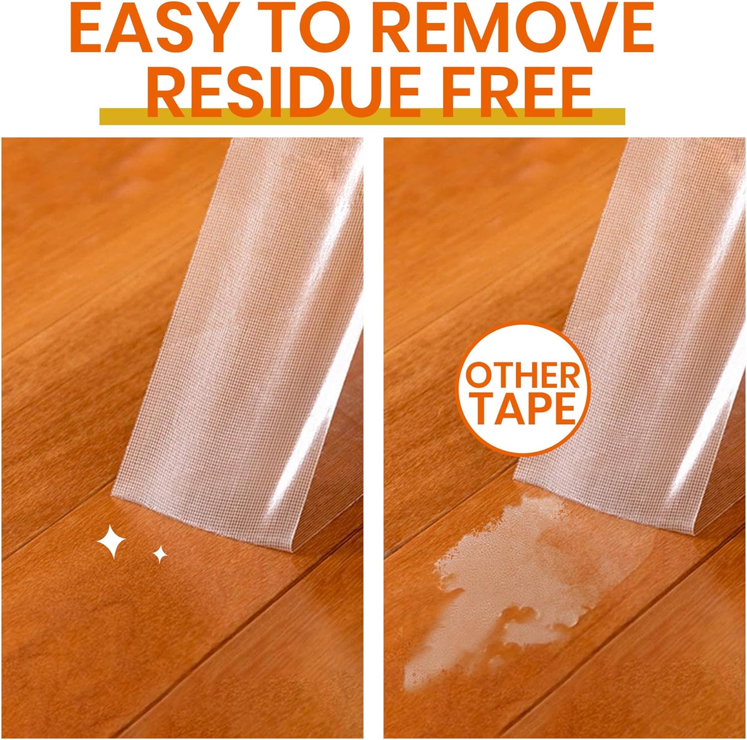 - INVISIBLE & RESIDUE-FREE: Ultra-thin 0.01" clear tape is hidden completely under rugs, with no visible strips or color mismatch. It could remove cleanly without residue from floors and carpets.