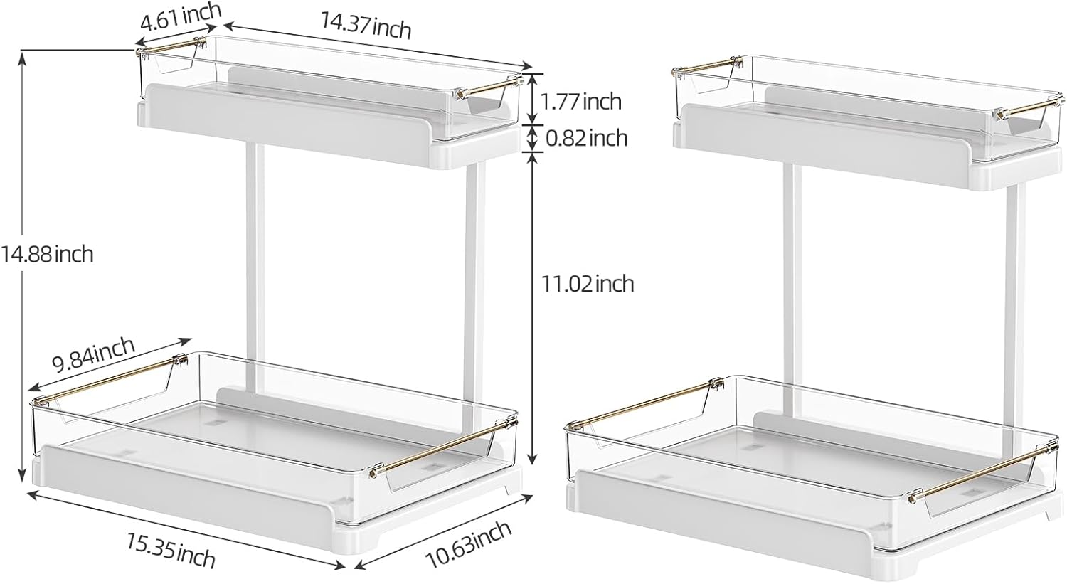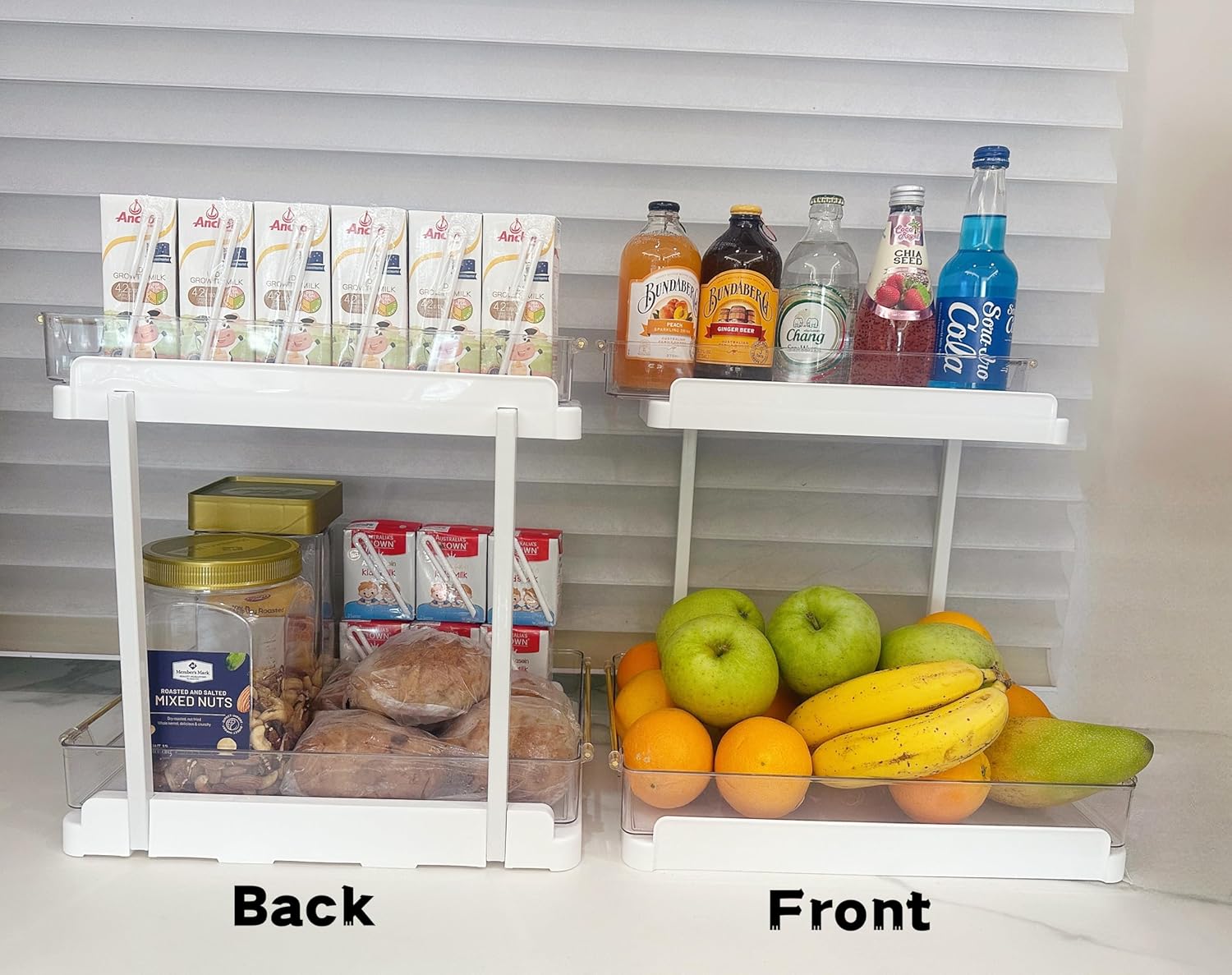 heart & home 2-Pack Under Sink Storage Organizer for Kitchen & Bathroom Cabinets with Removable Washable Tray, Tool-Free Assembly – Multi-Purpose for Countertop, Laundry & Vanity, White