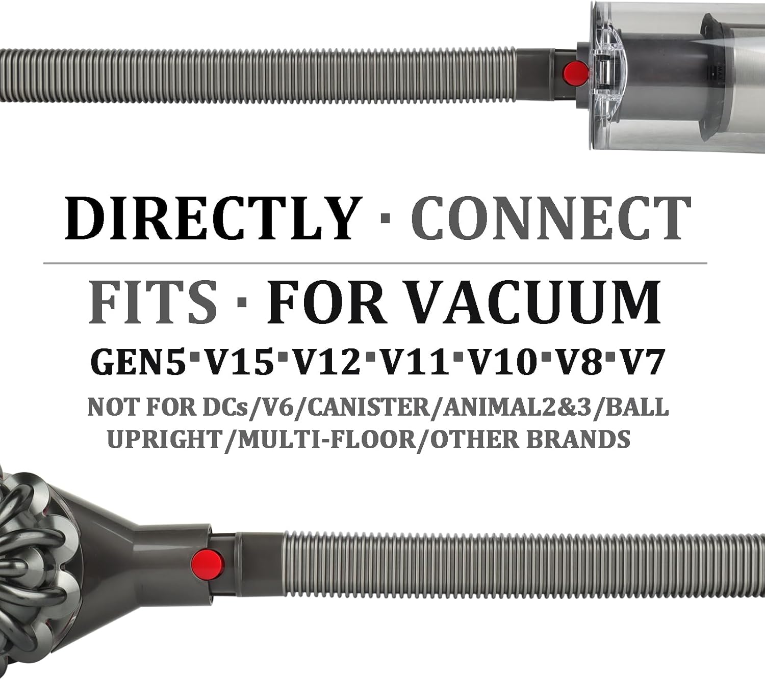 - NOT-COMPATIBLE: Not for non-Dyson vacuums, not for Dyson V6, SV09, SV03, not for Dyson DC models, the Ball/Canister Animal models, or upright floor models. Hose is not suitable for other Dyson or 3rd party attachments
