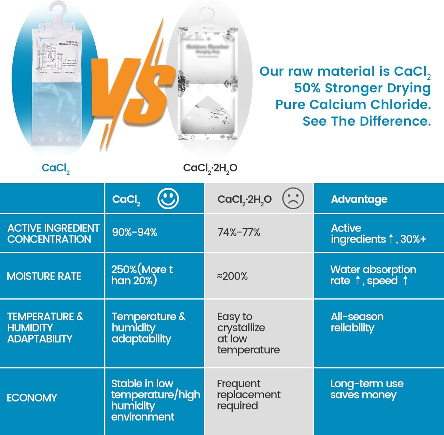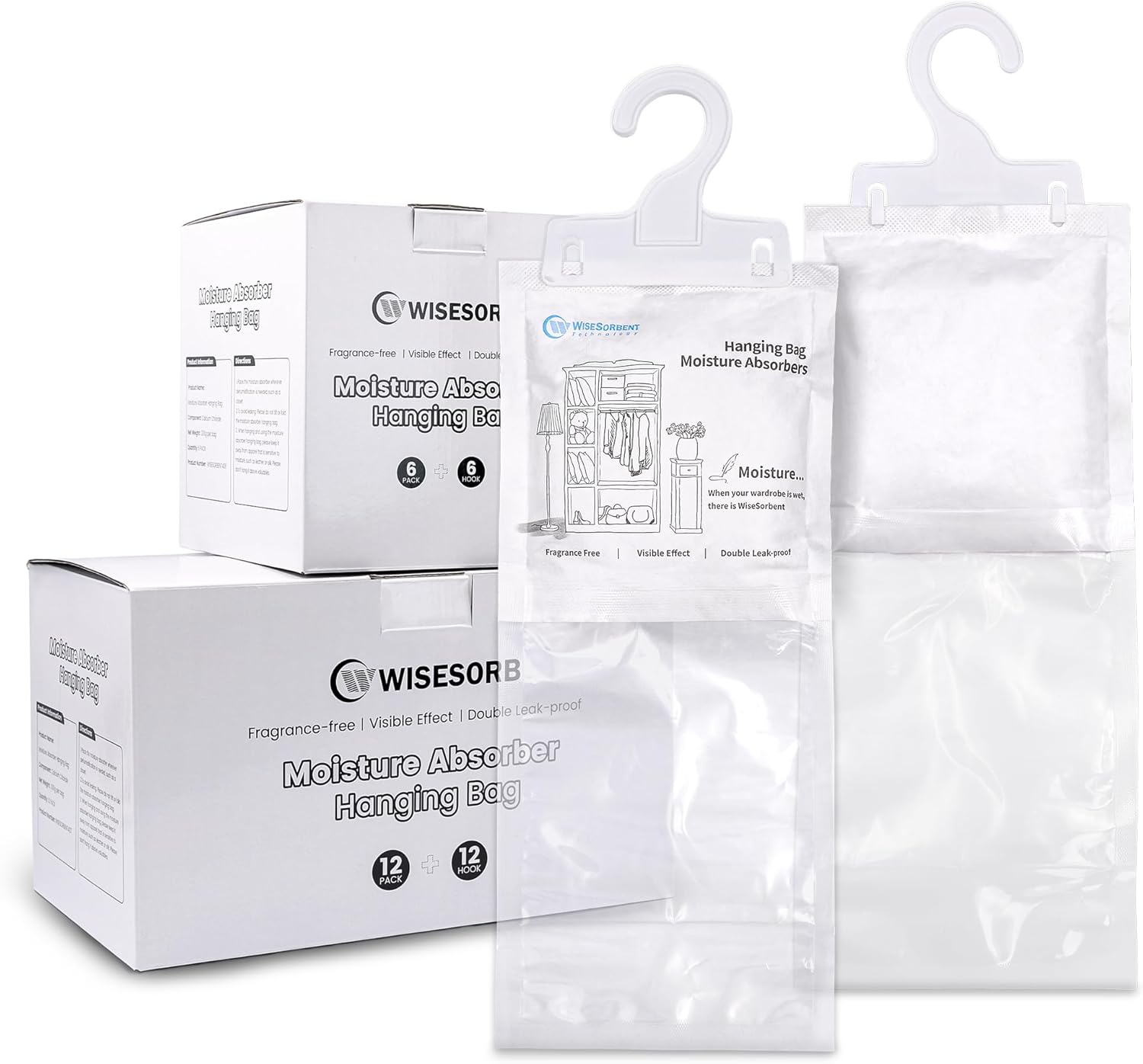 - [Versatile Hanging Design] Space-saving hanging hook design fits easily in closets, laundry rooms, storage boxes, and cars – powerful humidity control without taking up space.