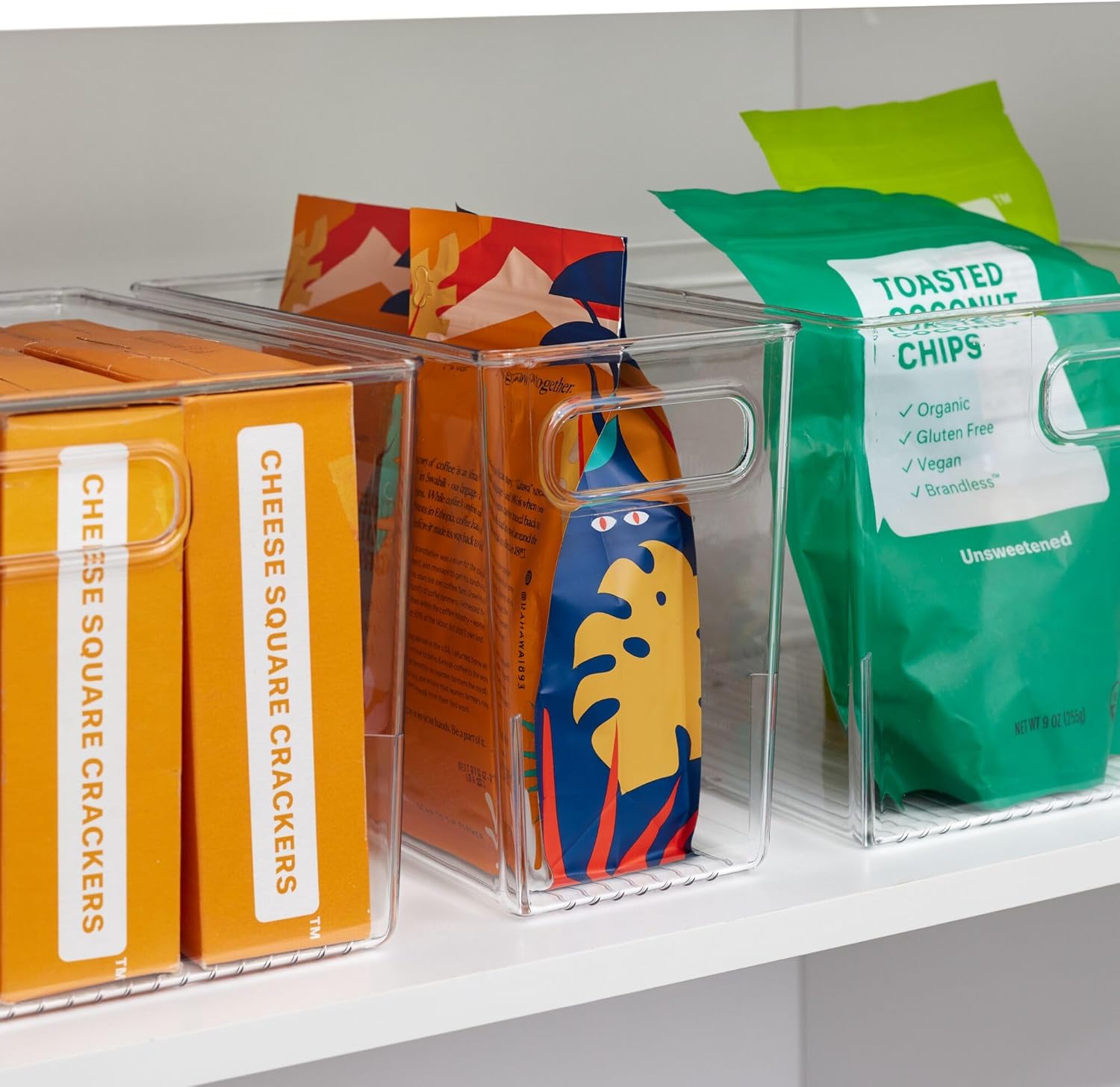 - SLIM DESIGN - Integrated handles provide a comfortable grip and facilitate easy transport around the home; Its narrow dimensions maximize tight shelf spaces, offering a solution for items that would otherwise get lost on cluttered shelves; Combine multiple units side by side for custom storage, creating a more thoughtful space for how you live