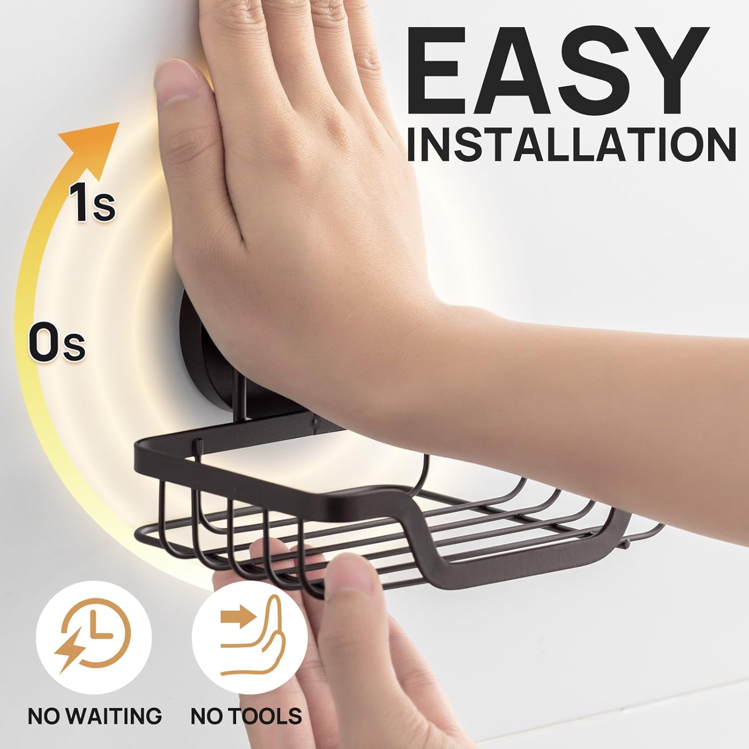 - 1 SECOND INSTALLATION: Get your bar soap holder up on the wall in just one second without any need for drilling, screws, glue, or tools. Simply choose a clean and smooth surface, take off protective cover, push the suction cup hardly with the palm of your hand until you hear sound of "PUFF"