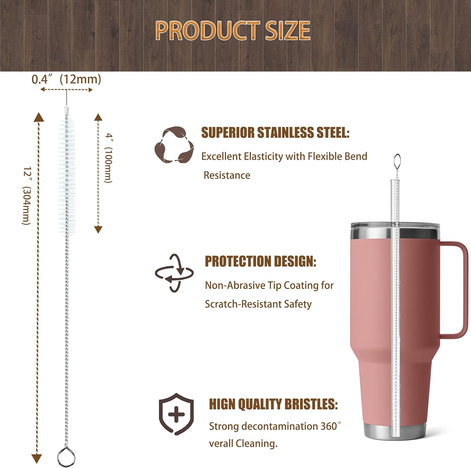 - 【Thermostable Curved Cleaning Solution】 Engineered with a semi-flexible core, the Stanley Straw Cleaner Brush bends to hug tumbler curves but snaps back to shape—even after scrubbing metal straw cleaner-grade steel. The rustproof 304-grade handle and heat-resistant bristles (withstands 60°C/140°F) outlast warping green pipe cleaners, making it ideal for sanitizing straw cleaner brush set kits or daily deep-cleaning.