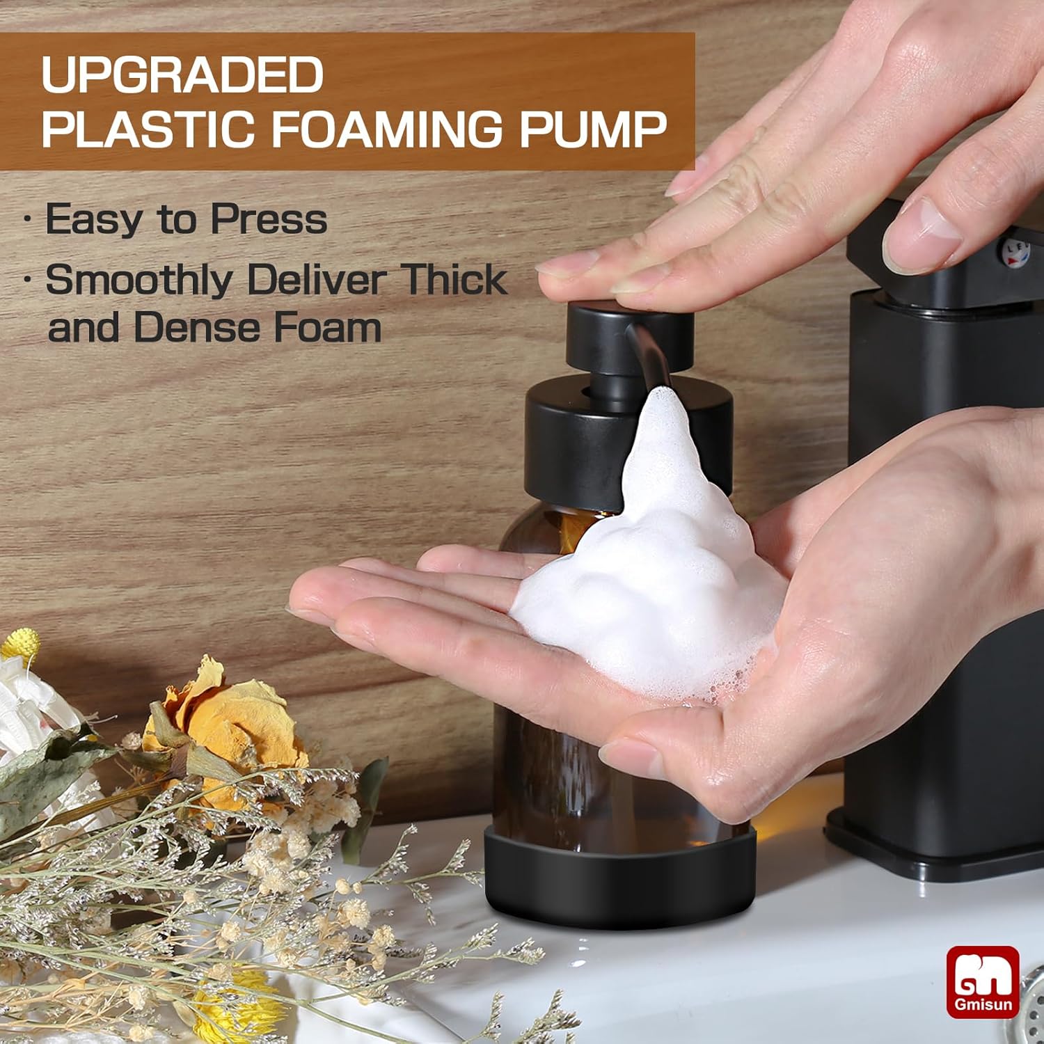 - 【Create Thick and Dense Foam】Glass Foaming soap dispenser has a wide-mouth design to help you fill soap effortlessly. Although the foam soap pump can convert most of the liquid soap into foam, it is also recommended to use foaming soap for better foam. If you use a liquid soap, please mix 3 ~ 5 parts water to produce foam. Surprisingly, liquid soap of the same quality can be saved to use as foam for a longer time. A foam hand soap dispenser can simply improve the quality of your life.