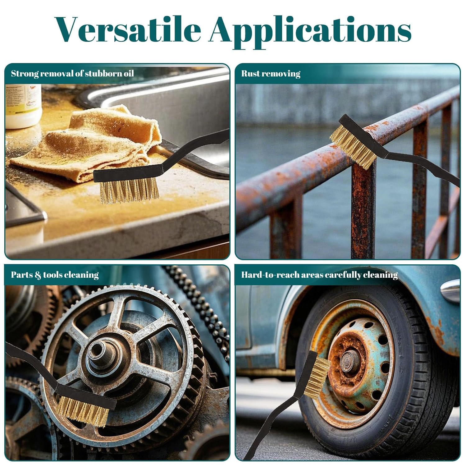 - [Wide range of application]: The brass plated brush set is suitable for cleaning rust removal, steel parts, machinery, raw metal parts, paint stains, welding slag, special corrosion, will not damage the surface, and can also be used to clean door frames, sliding doors, floor tiles and other gaps