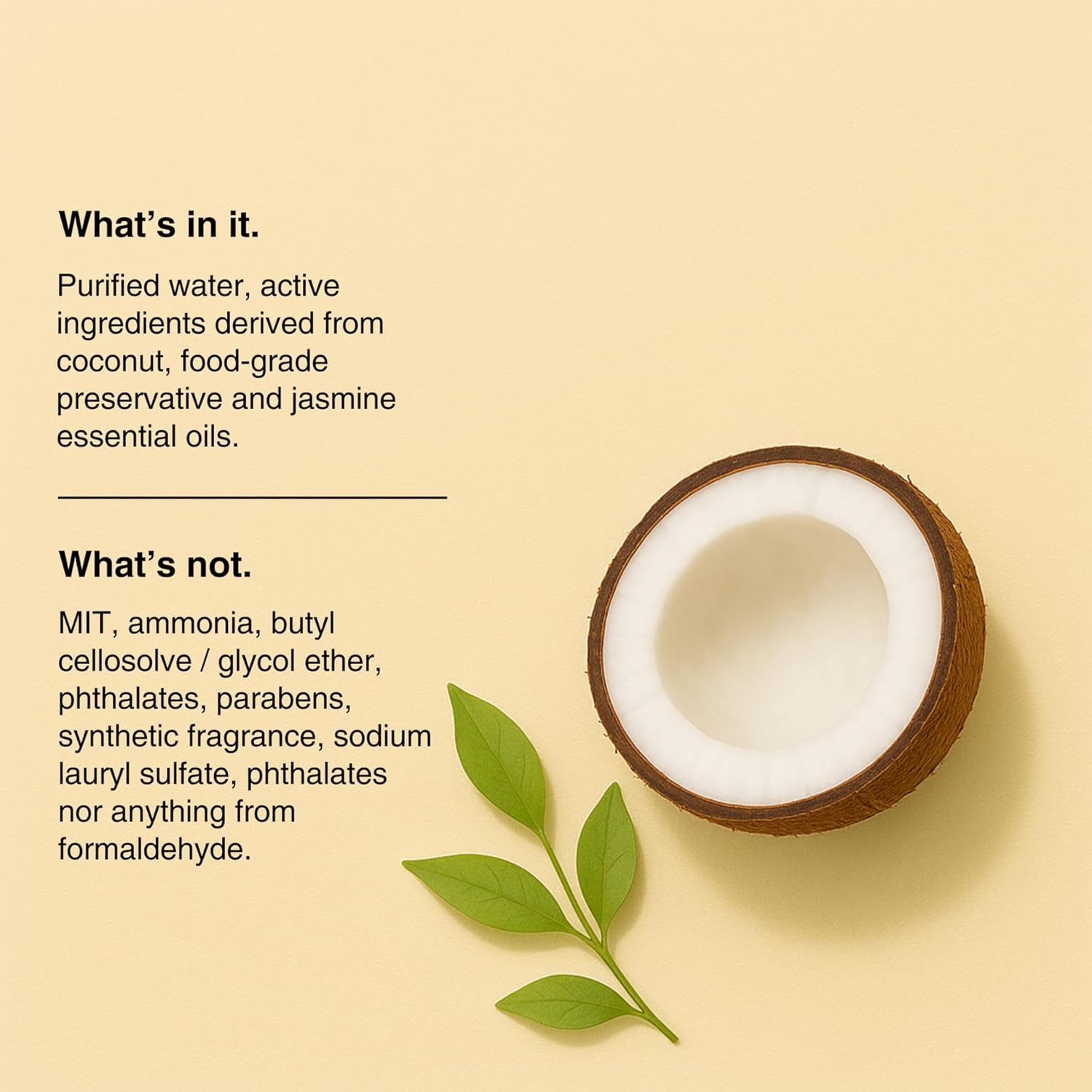 - Free From Harsh Ingredients – No ammonia, glycol ethers, synthetic fragrances, SLS, parabens, phthalates, or anything derived from formaldehyde.