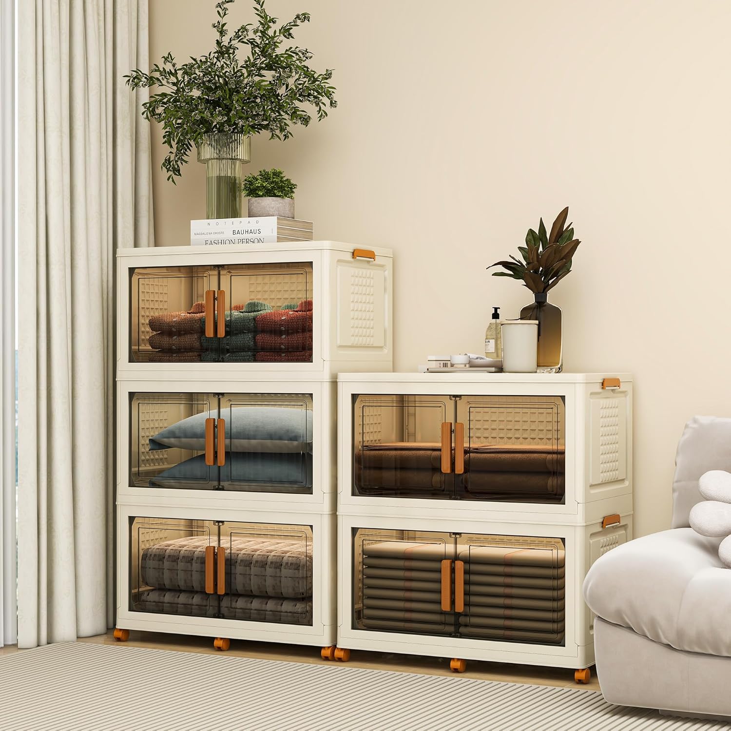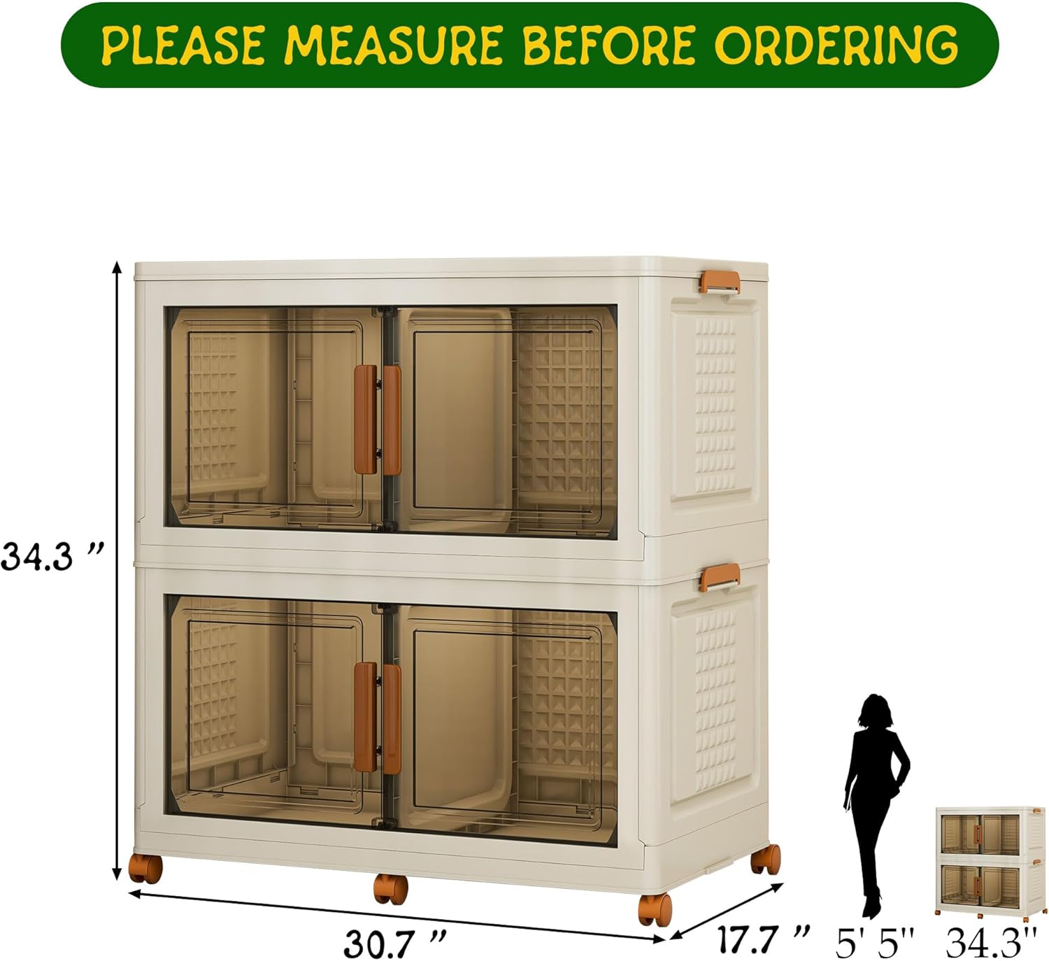 2 Tier Extra Large Stackable Storage Bins with 1 Lid 155 QT/Tier, Collapsible Plastic Box Storage with Wheels, Home Containers Boxes Closet Organizers for Living Room, Office, Dorm
