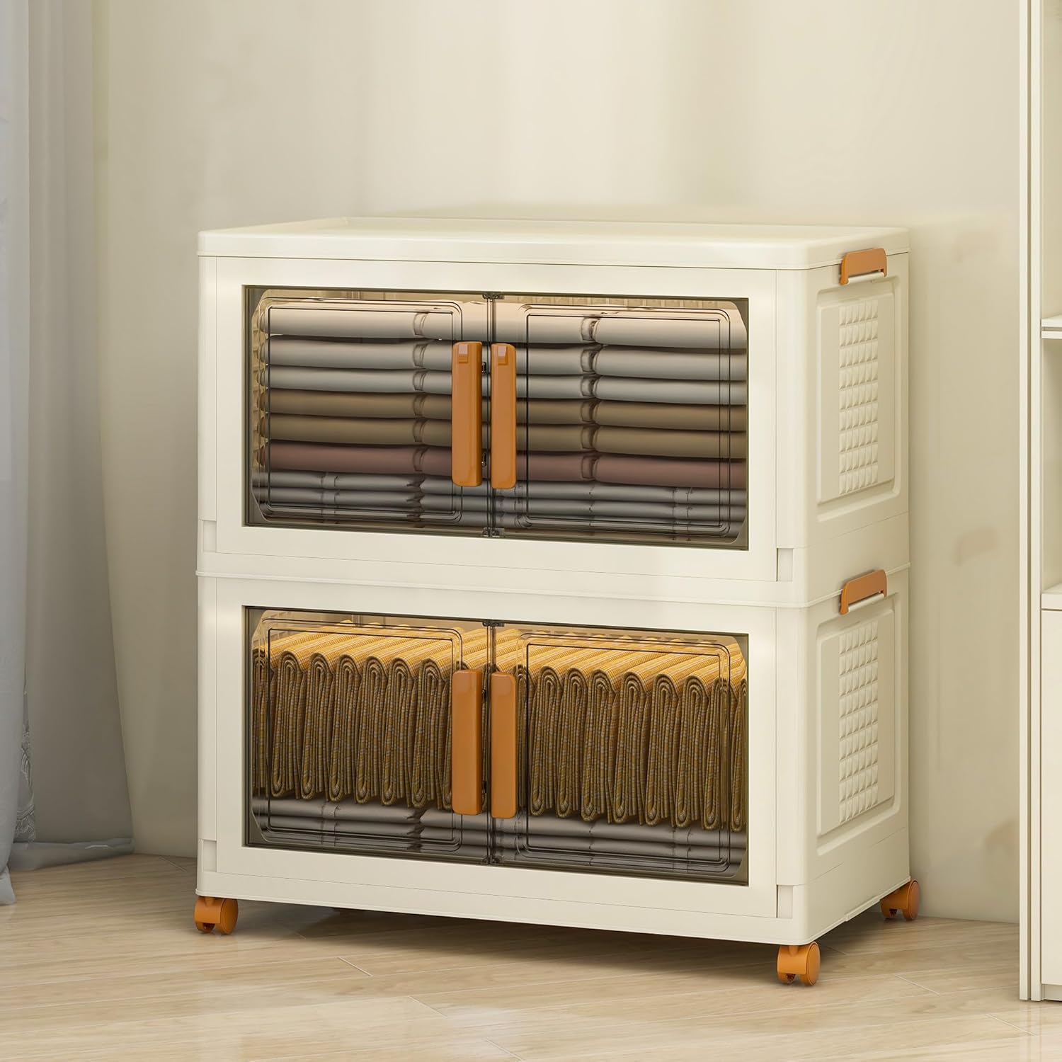 2 Tier Large Stackable Plastic Storage Bins with 1 Lid 95 QT/Tier, Collapsible Plastic Box Storage Bin with Wheels, Home Containers Boxes Closet Organizers for Living Room, Office, Dorm
