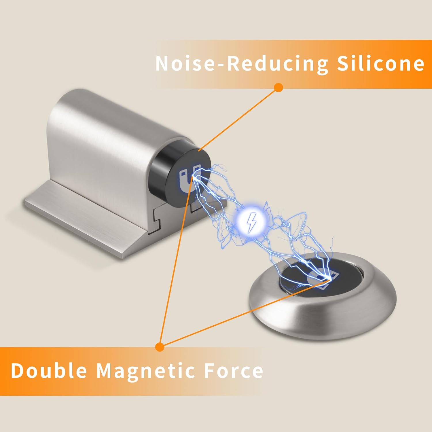 - DURABLE DESIGN: This door stopper is made of high quality zinc alloy and features a dual magnet design for strong suction, it has a soft snap feature to minimize noise, and an electroplated surface to prevent scratches and ensure durability.