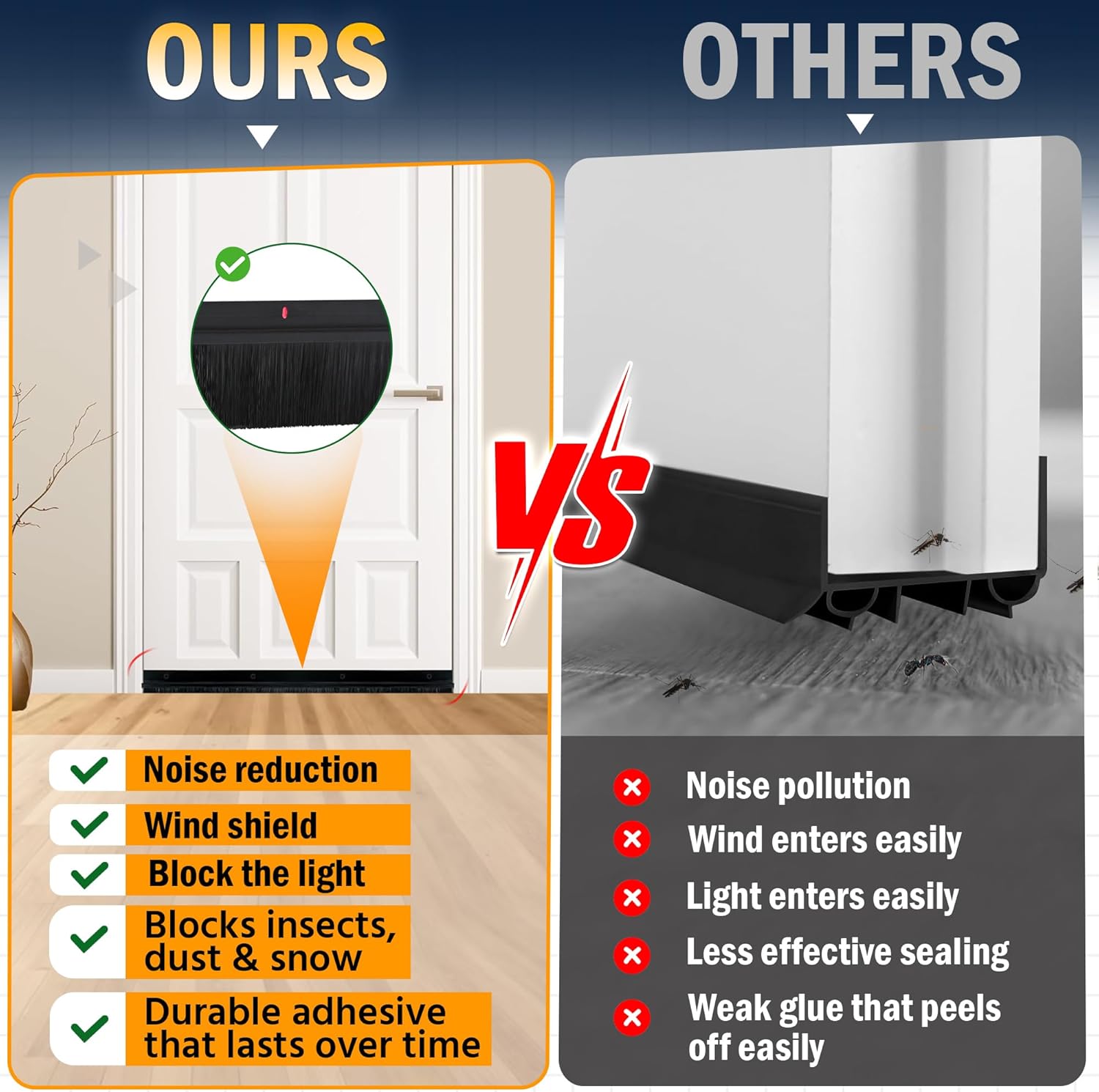 - šš»š²šæš“š š¦š®šš¶š»š“š & šš¼šš²šæ šš¶š¹š¹š: This under door draft stopper and door sweep for bottom of door works as an effective gap filler and door draught excluder strip to block hot and cold air leaks, keeping your room temperature stable and helping reduce heating & cooling costs ā also great with an attic door insulation cover.
