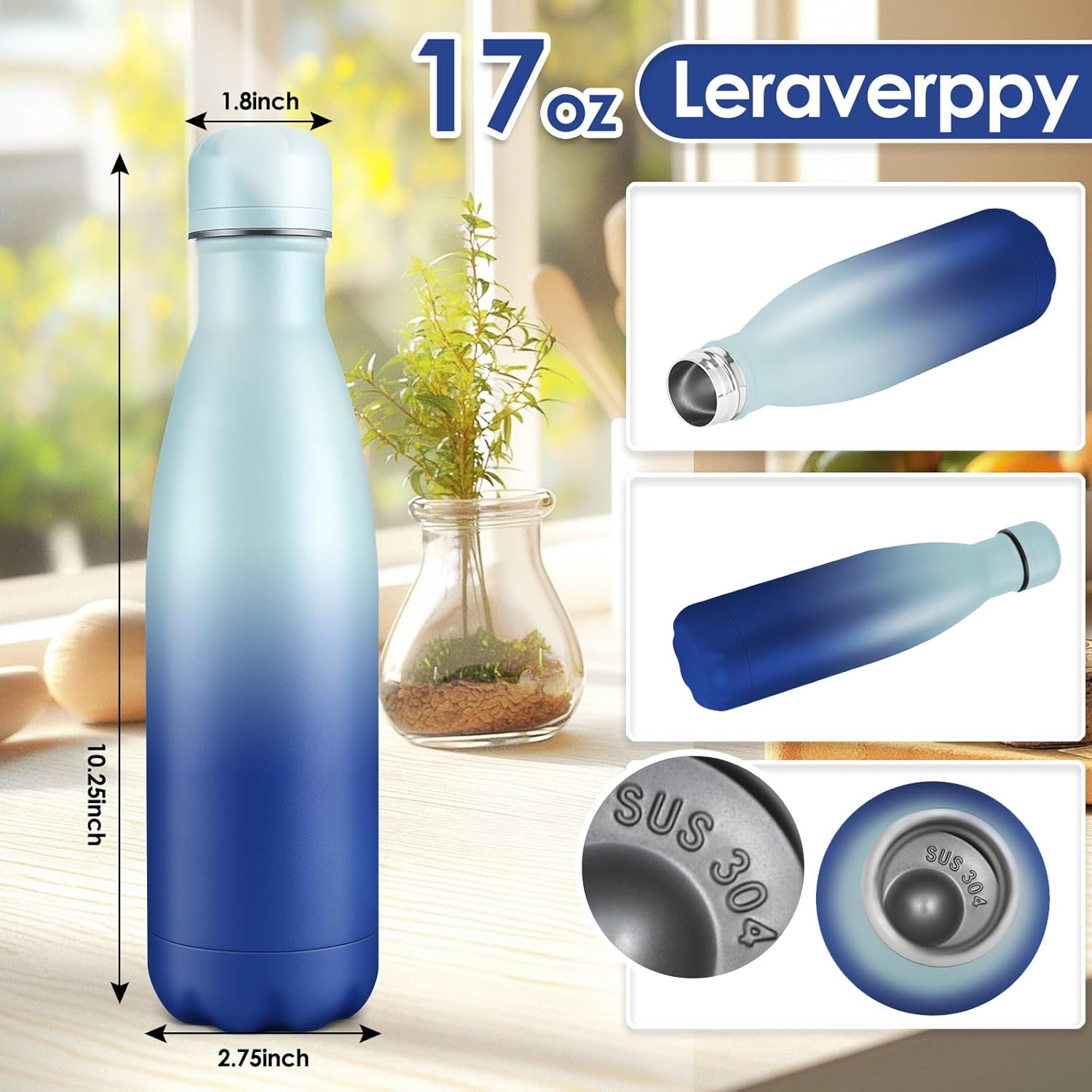 17oz Cola-Bottle Shaped Stainless Steel Leak-proof Water Bottle,Double Wall Vacuum Insulated Metal,Travel Mug For Sports Indoors & Outdoors,BPA-Free Kids Flasks,Green Blue(8 Pack)