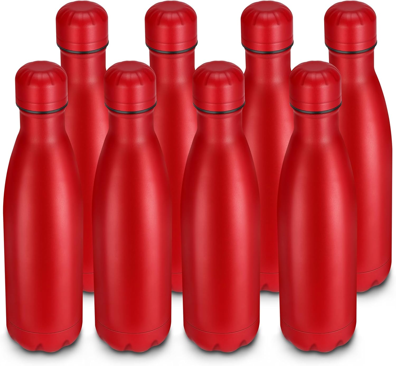 17oz Cola-Bottle Shaped Stainless Steel Leak-proof Water Bottle,Double Wall Vacuum Insulated Metal,Travel Mug For Sports Indoors & Outdoors,BPA-Free School Kids Flasks,Red(8 Pack)