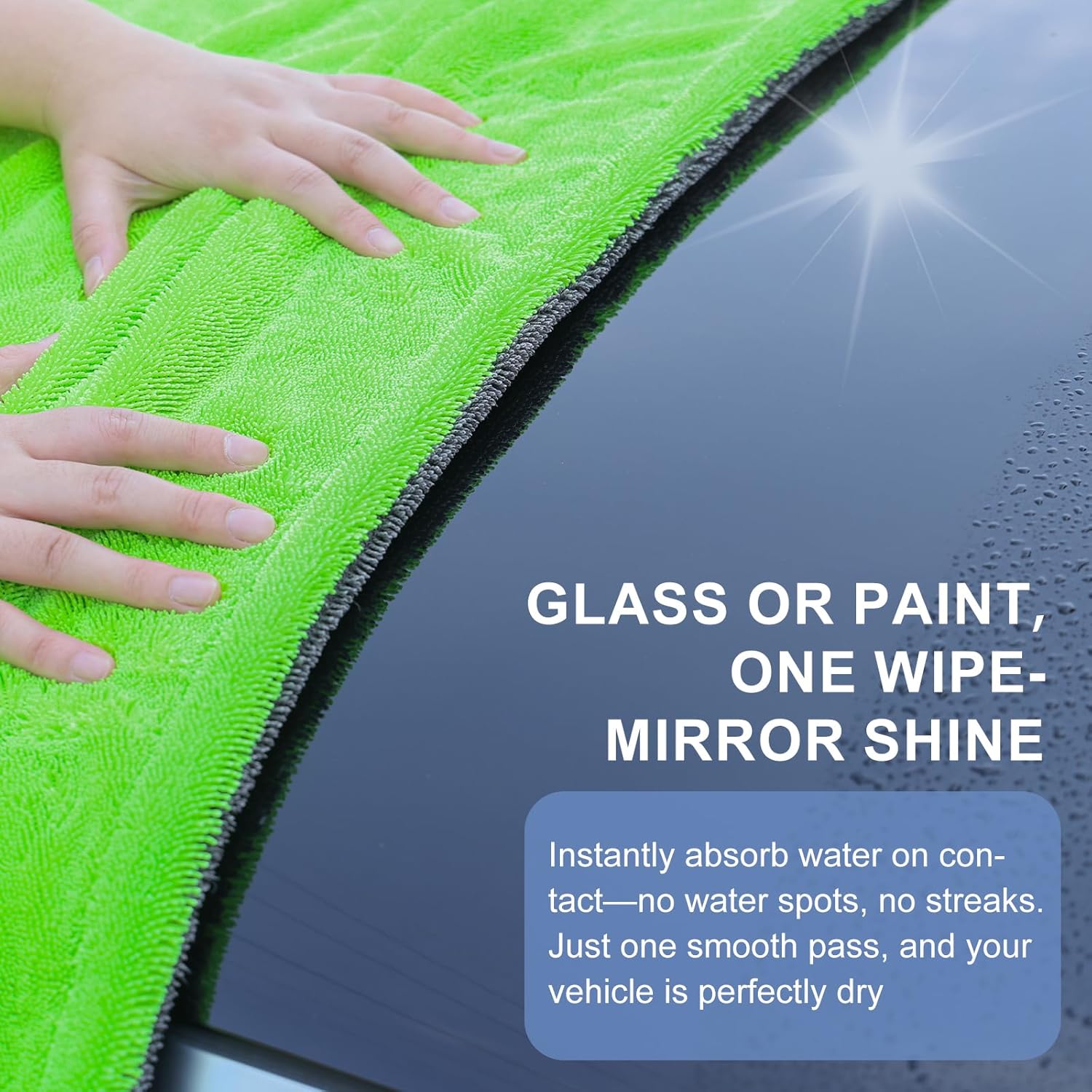 2 Pack XL Car Drying Towel – 1300GSM Ultra Absorbent Microfiber, 24"x36" Large Size, Twisted Loop, Lint-Free & Streak-Free for Auto Detailing, Car, SUV, Truck (Gray-Green)