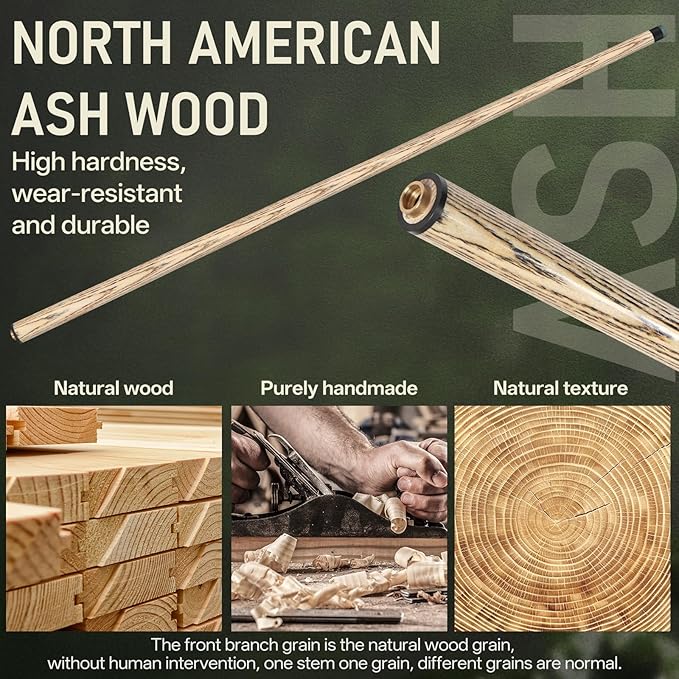 • Exquisite Craftsmanship: Pool cue is made of high-quality North American ash wood, which has been treated with black technology, making it harder than ordinary wood, straighter and less likely to bend.Breaking cue has a high-gloss glossy coating and multiple layers of varnish, which has good solvent resistance, helps protect the wood from moisture and bending, making it easier for players to maintain the cue stick