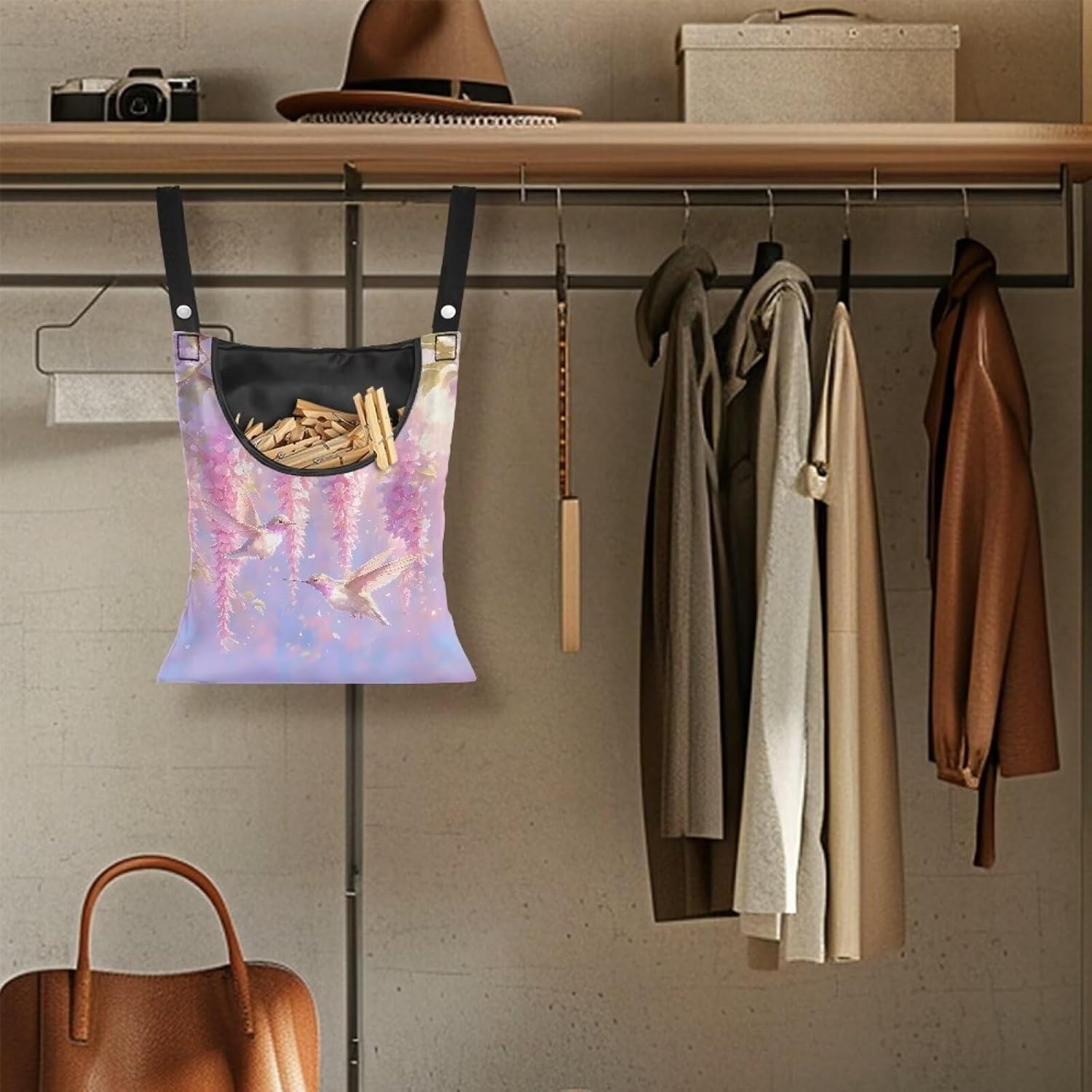 Clothespin Bag for Outdoor Laundry Clothesline and Clothes Pin Holder Clothespin Bag for Heavy Duty Outdoor Use - Hummingbird Flower