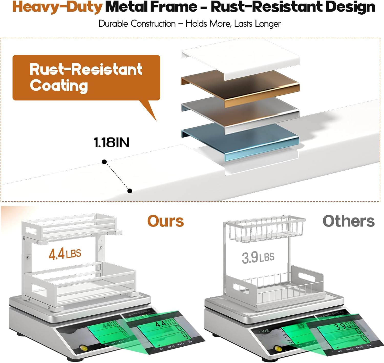 - 【Sturdy metal sheet frame&Rust-Proof】The under sink organizer is built from solid metal sheets with a strong frame and superior rust-resistant design, making it durable and ideal for long-term use in humid areas like kitchens,bathrooms and Laundry Room.