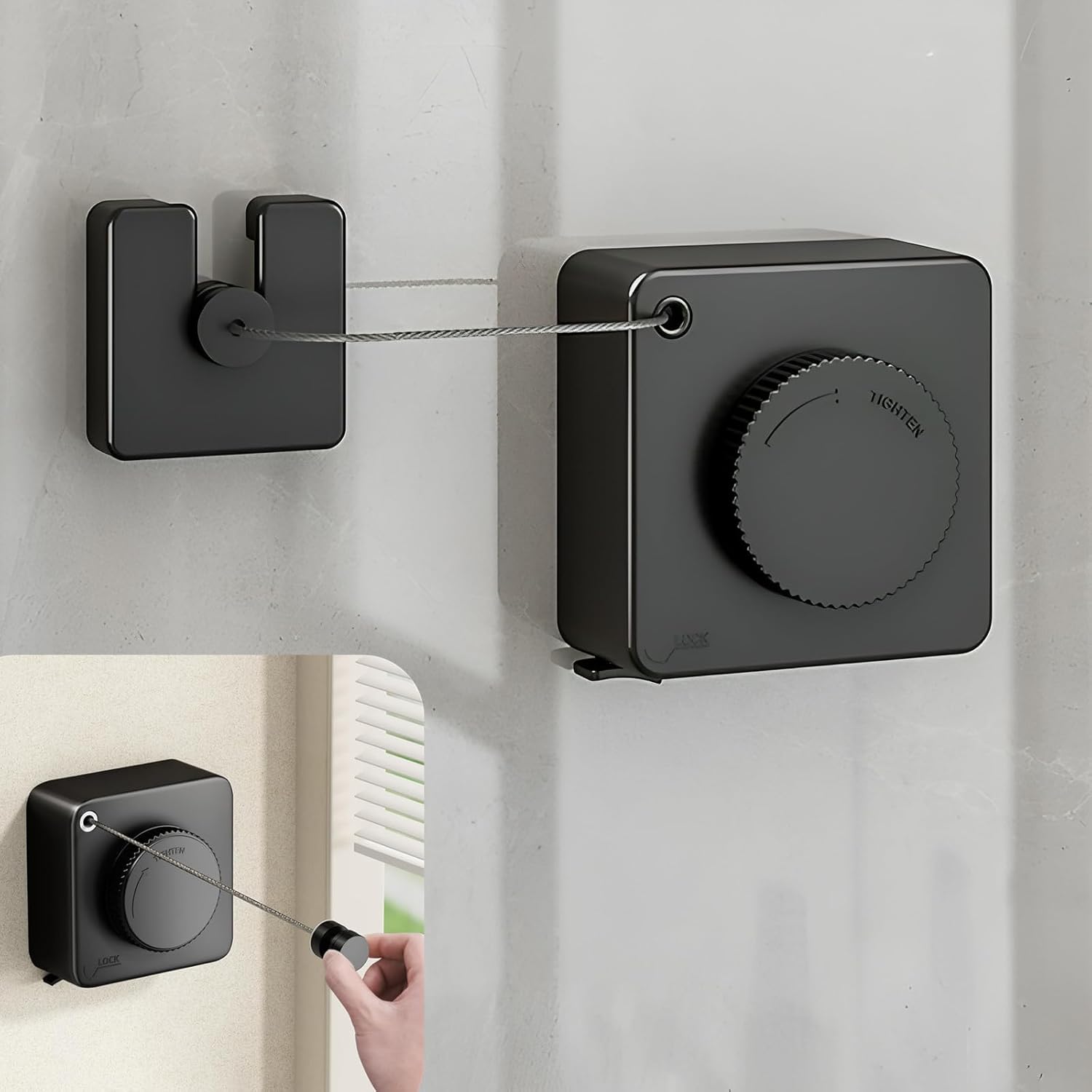 - 【Easy To Install】This retractable washing line offers you two installation options —Glue Mounting and Drill Mounting. If you plan to install it indoors and don't want to damage the wall, we suggest you use Glue Mounting that won't damage your wall (only for smooth walls like tile, marble, glass, etc.), drill mounting can be chosen to install to anywhere you want.