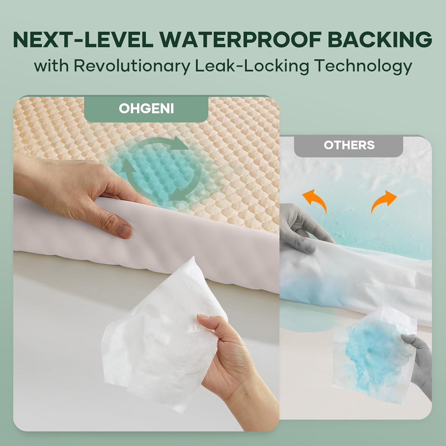 OhGeni 100% Waterproof Mattress Protector, Queen Size Mattress Pad, Fits 6"-20" Mattresses with Deep Pocket, Cooling, Breathable Fitted Sheets, Soft Bed Cover, Noiseless, Machine Washable, Beige