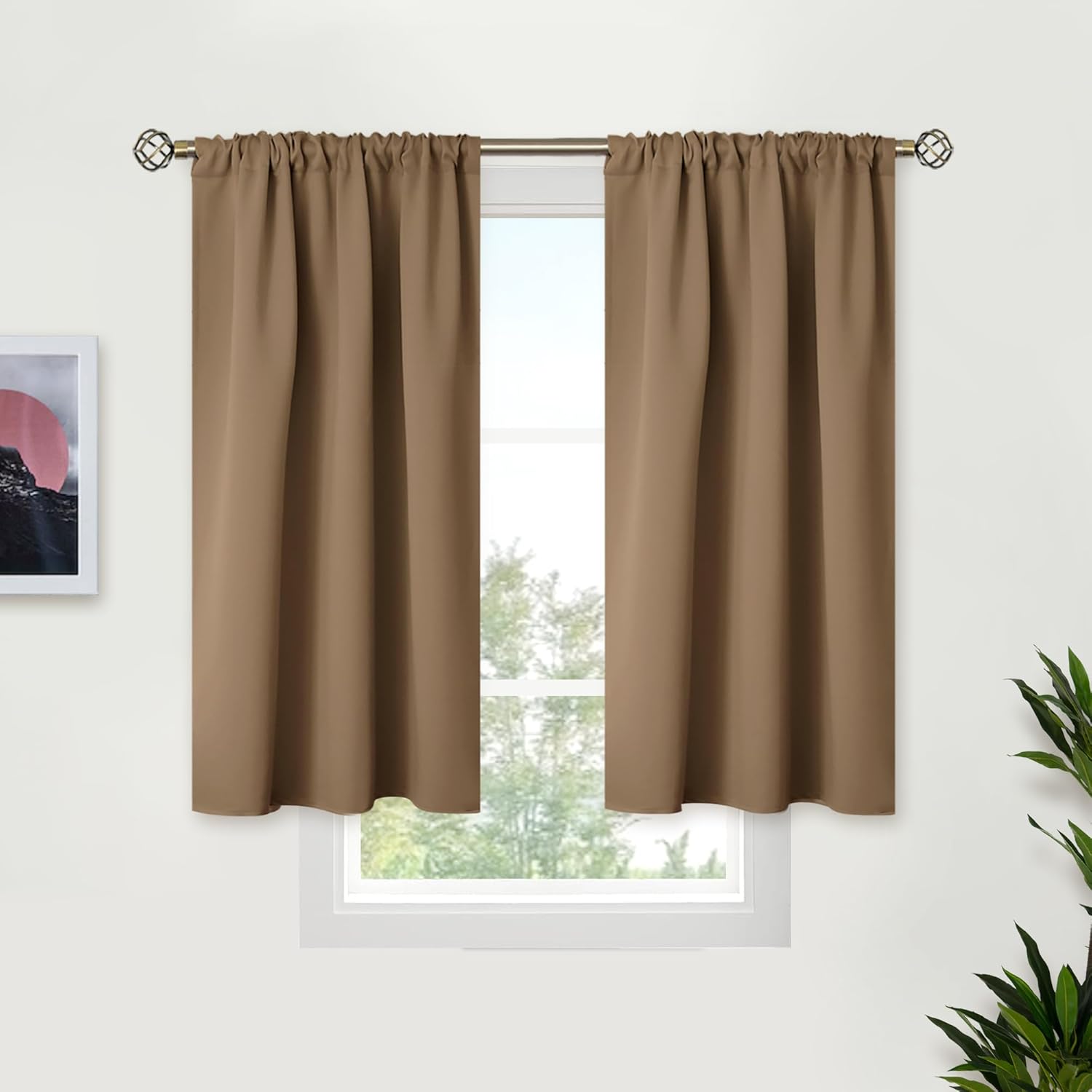 BGment Taupe Blackout Curtains 45 Inches Length for Short Kitchen Window - Small Thermal Insulated Drapes with Rod Pocket Privacy for Cafe Bathroom, 34 x 45 Inch, 2 Panels