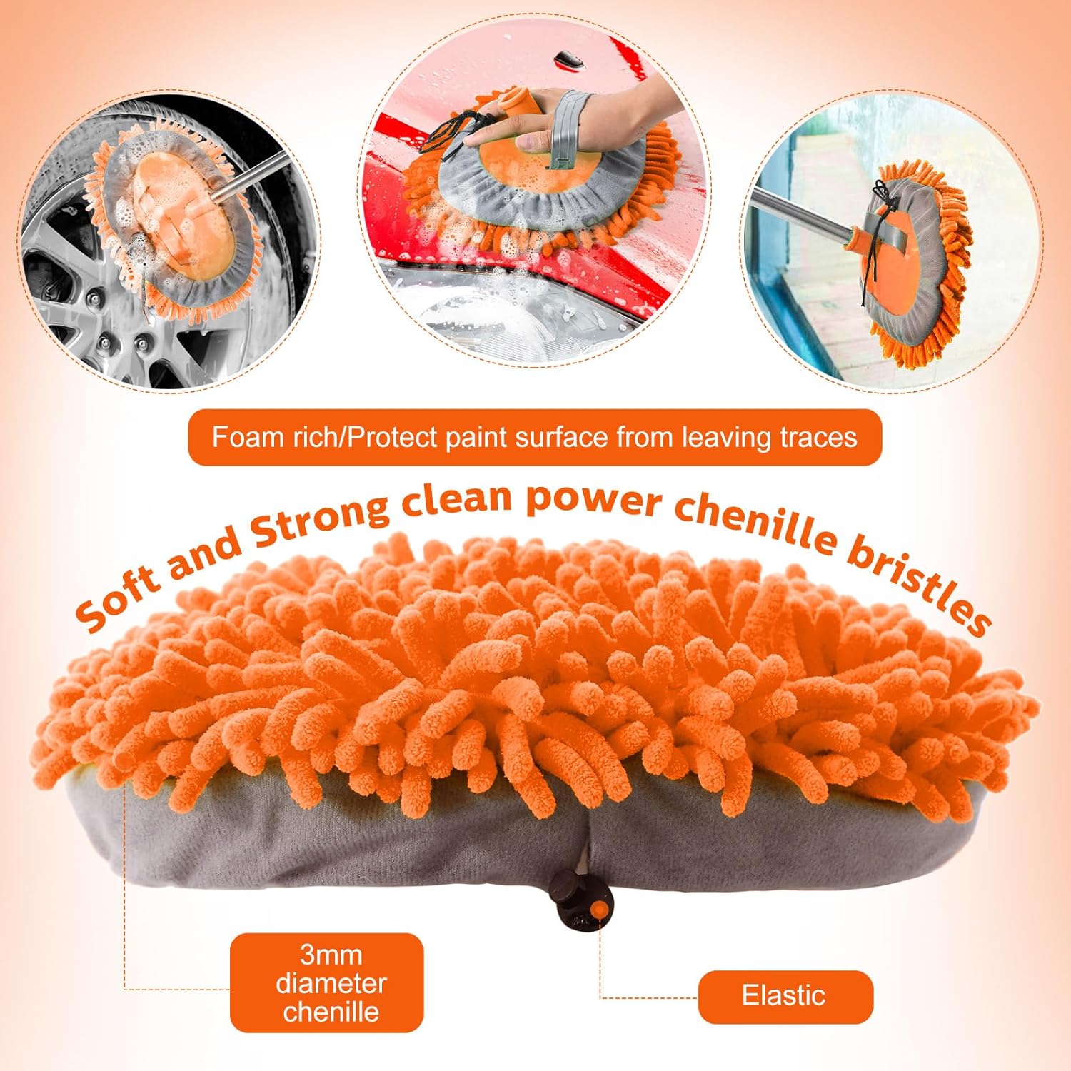 - Efficient Car Cleaning Solution: keep your car's finish looking nice with our microfiber car wash brush; The chenille scratch proof replacement heads securely attach to your mop handle to effectively but gently clean off dirt, dust, and debris from your vehicle's surface, preserving your car's paintwork
