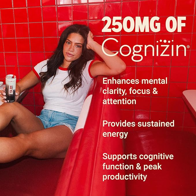BUM Sugar-Free Energy Drink, Cola - Lightly Carbonated & No Artificial Colors, Natural Caffeine & Citicoline for Energy & Focus, Brain Boost & Workout Sports Beverage - 12 oz, Pack of 12