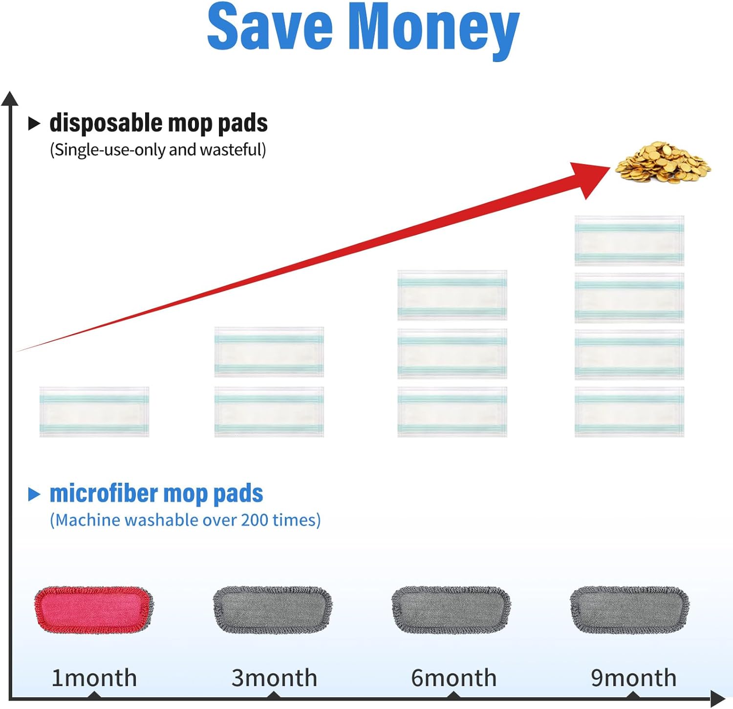 • Washable and Reusable-The back pad can be connected with the mop head by hook, which is convenient for disassembly.The mop pad can be washed over and over again, machine washable, hand washable, and then reused. Never use bleach.