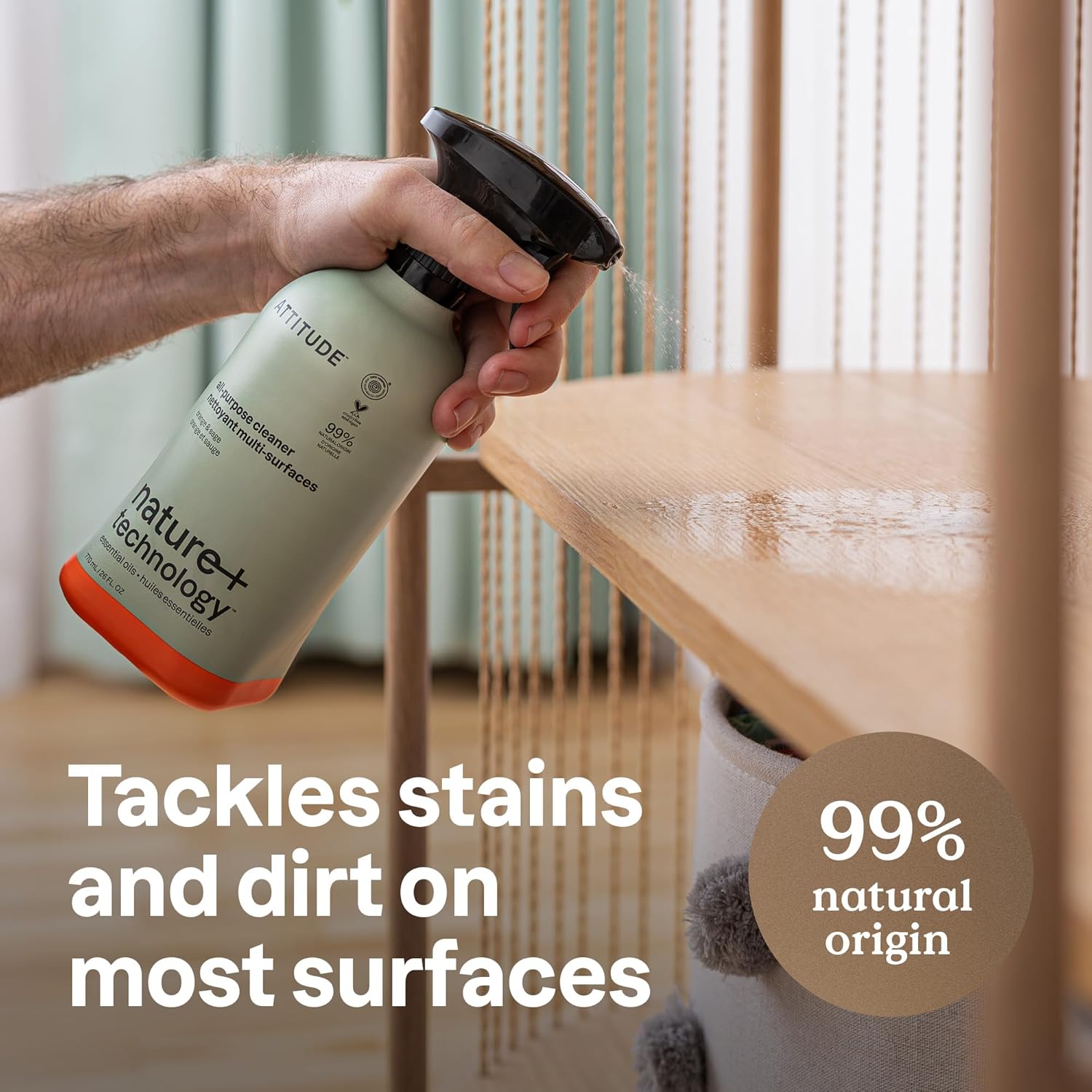ATTITUDE All-Purpose Cleaner Spray, Plant-Based Ingredients, EWG Verified, Streak Free, Ammonia Free, Removes Fingerprints, Dust and Dirt, Sage & Orange, 26 Fl Oz